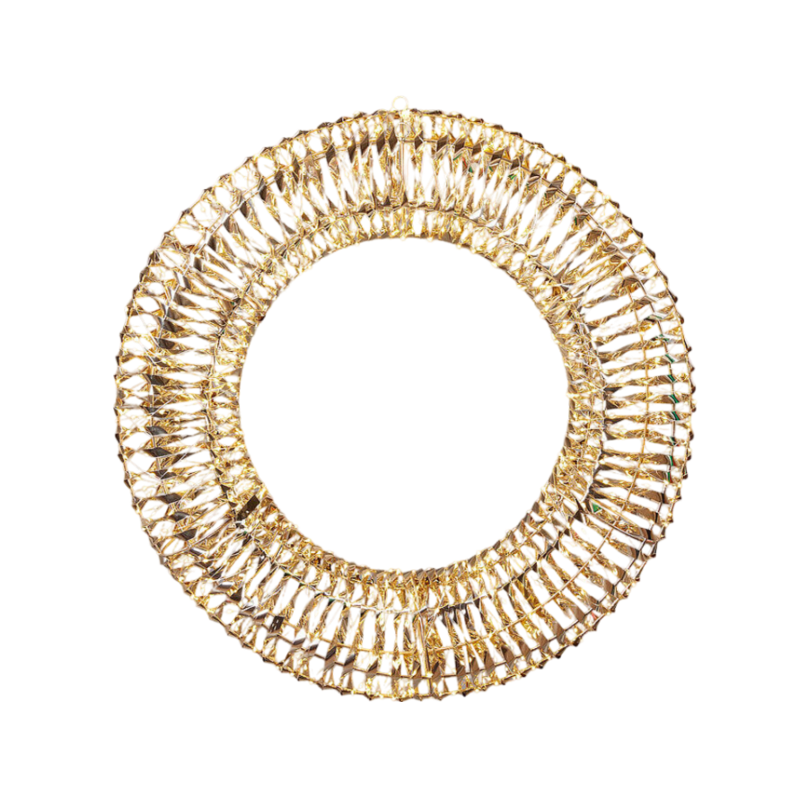 La corona natalizia in metallo con luce LED calda è un elemento decorativo raffinato e accogliente progettato per arricchire le celebrazioni natalizie in modo elegante.