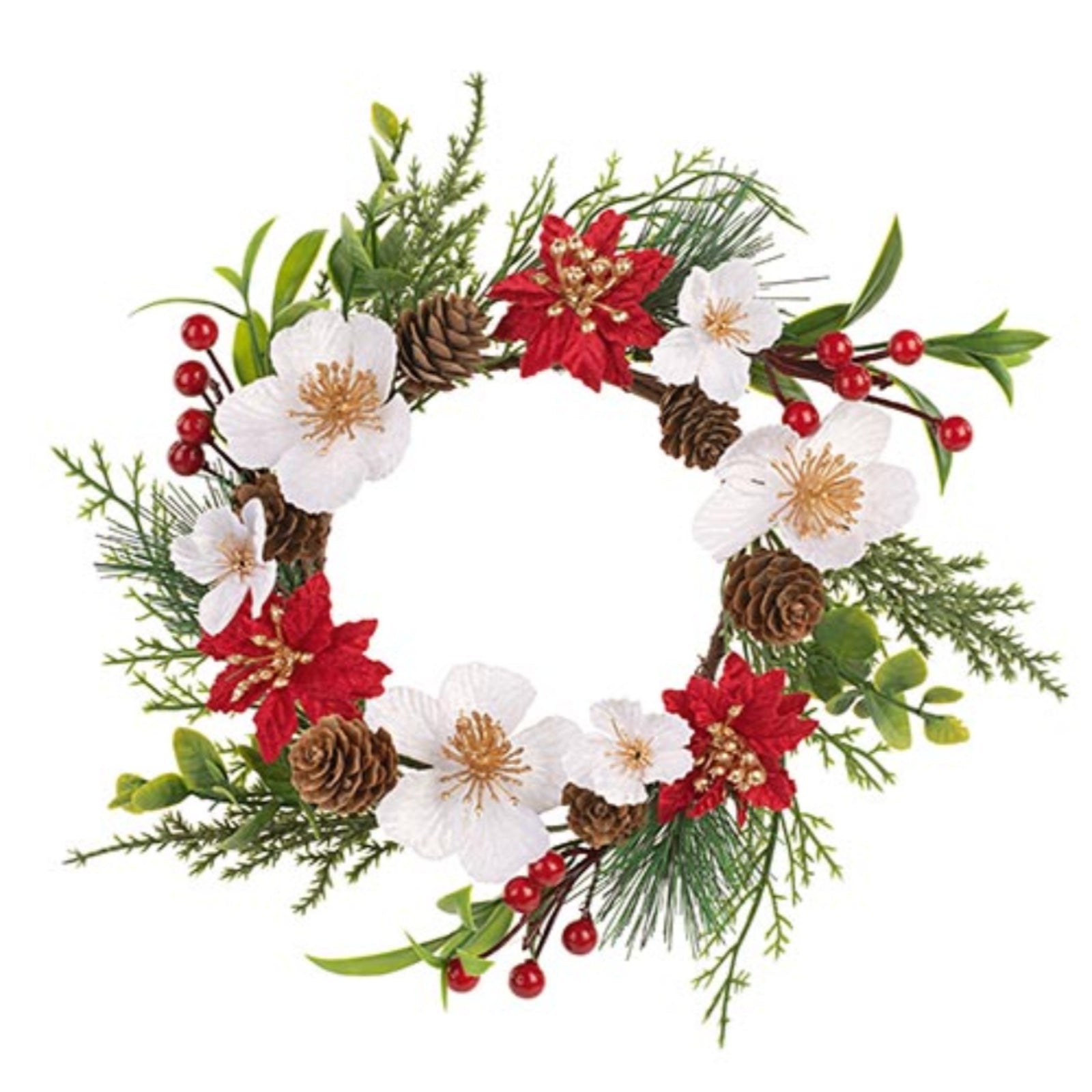 Porta in casa la magia del Natale con questa elegante ghirlanda decorata con fiori.