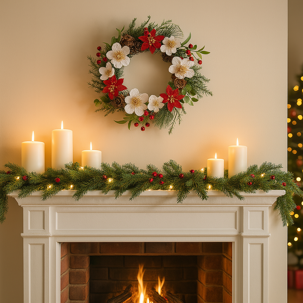 La combinazione dei fiori con i classici elementi verdi tipici delle feste crea un contrasto delicato, ideale per chi desidera decorare la propria casa con gusto e semplicità.