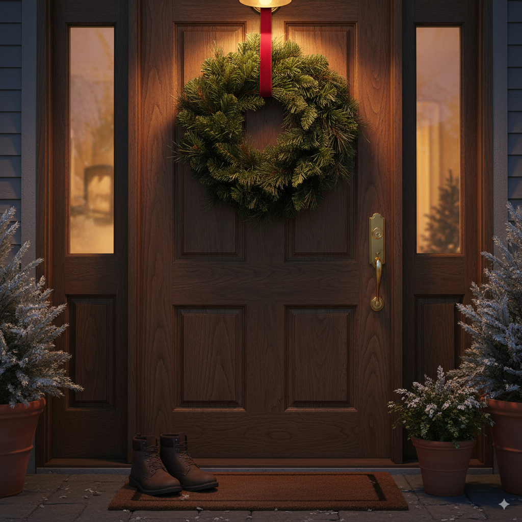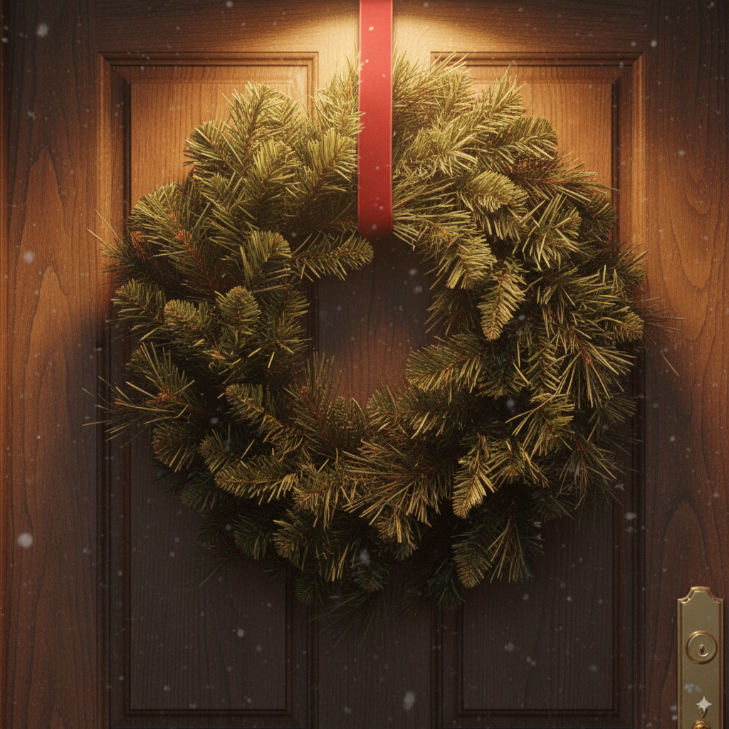 Sospesa dietro la porta, questa ghirlanda crea un'accogliente atmosfera natalizia già all'ingresso della tua casa, dando il benvenuto a familiari e ospiti con un tocco di calore e festività.