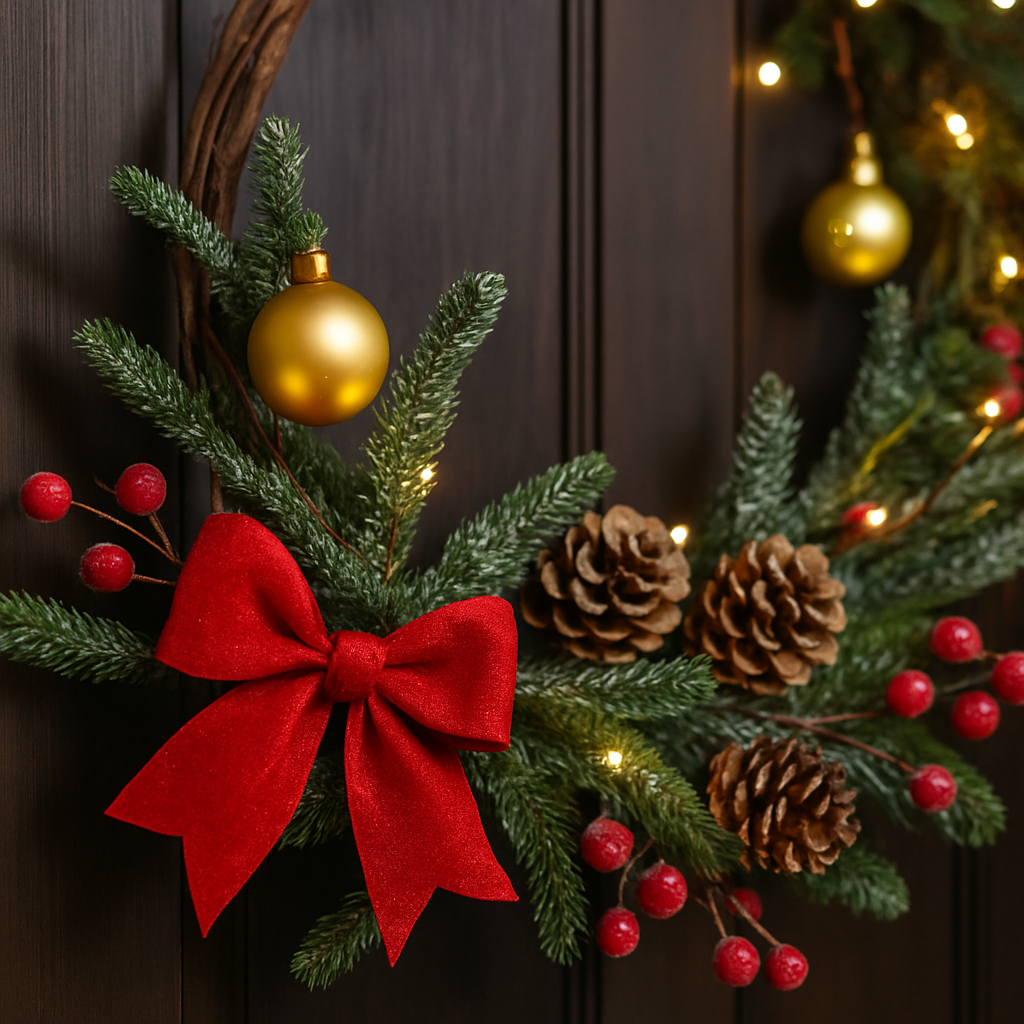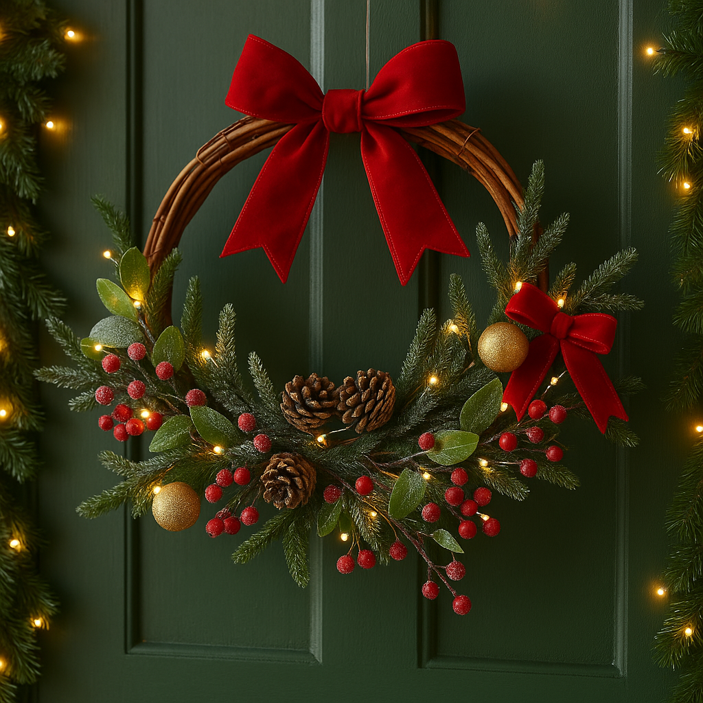 Dona un tocco festoso e accogliente alla tua casa con questa ghirlanda natalizia da 40 cm, decorata con bacche rosse decorative che richiamano la bellezza del Natale tradizionale. Perfetta da appendere dietro la porta d’ingresso, su pareti, finestre o camini, è adatta sia per ambienti interni che esterni (in spazi coperti).