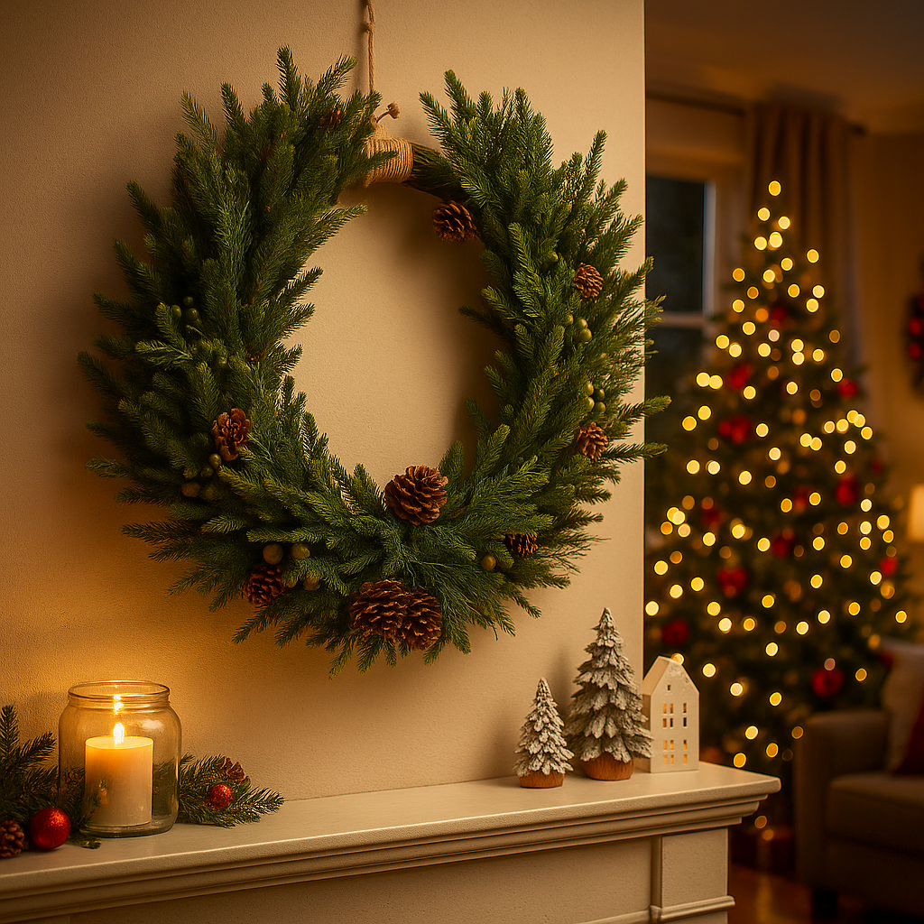 Il contrasto tra il verde intenso dei rami e le bacche dona un effetto naturale e tradizionale. Facile da appendere e abbinare a fiocchi, nastri o altre decorazioni natalizie.