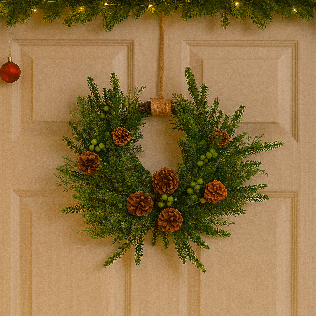 Ghirlanda natalizia con pigne, da interno ed esterno per dietro porta