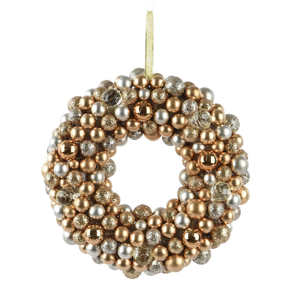 Ghirlanda tonda natalizia con sfere oro, decorazione per dietro porta da 25 cm