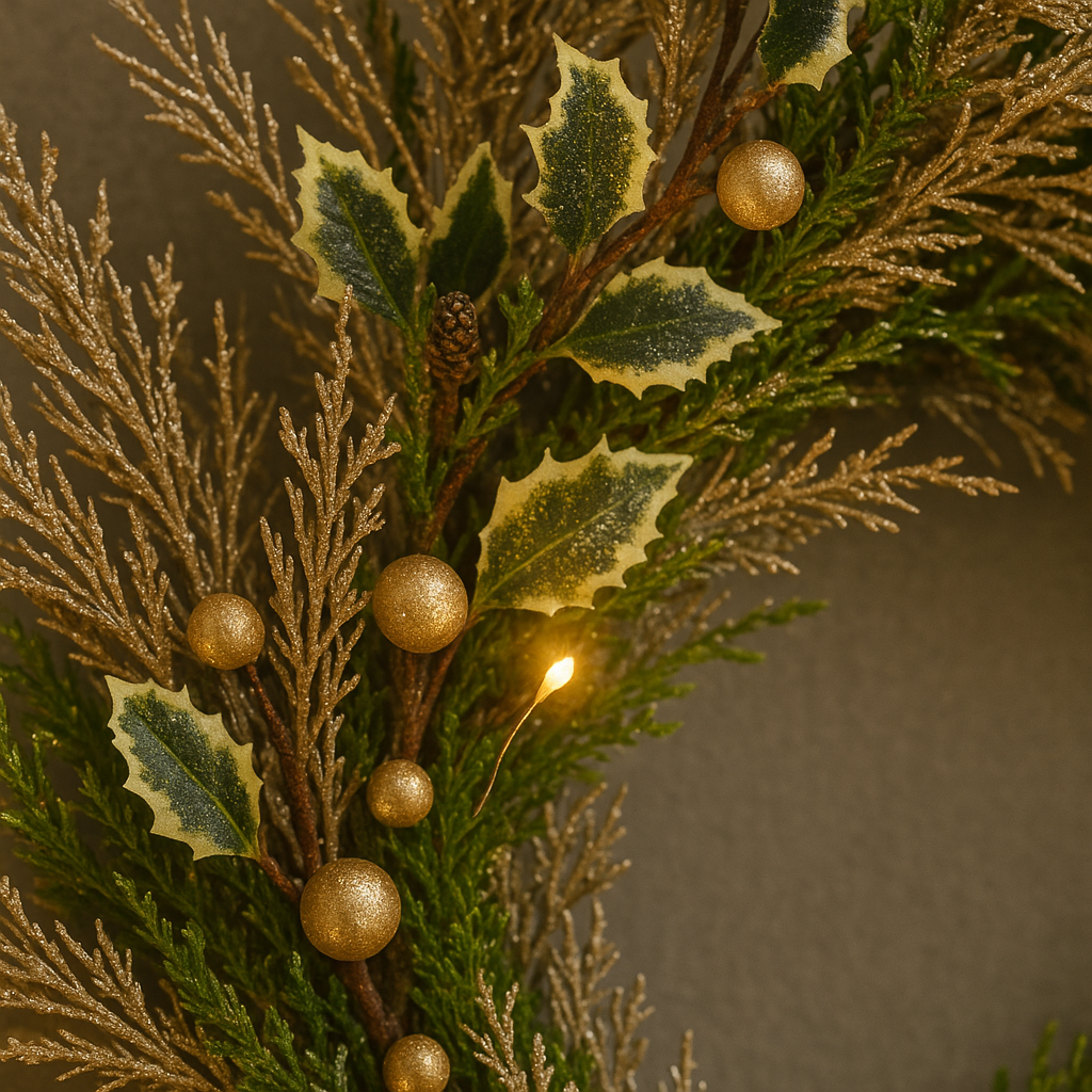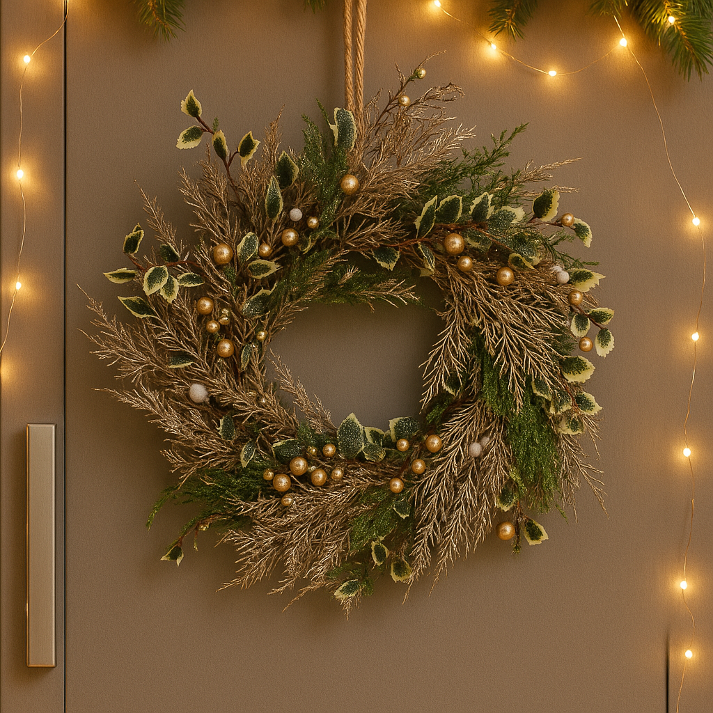 Ghirlanda natalizia colore champagne, decorazione da interno ed esterno per dietro porta