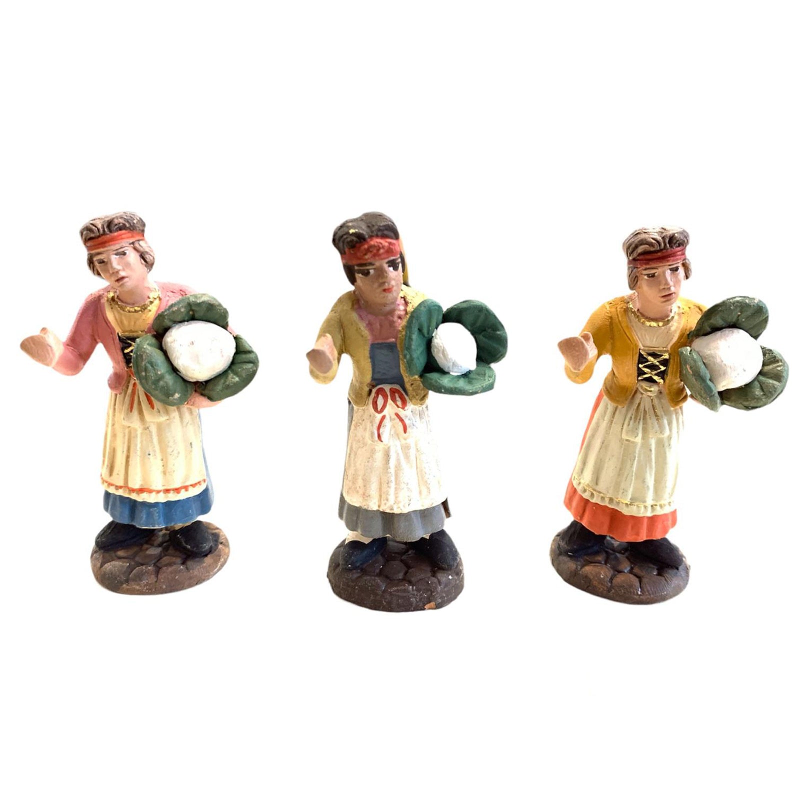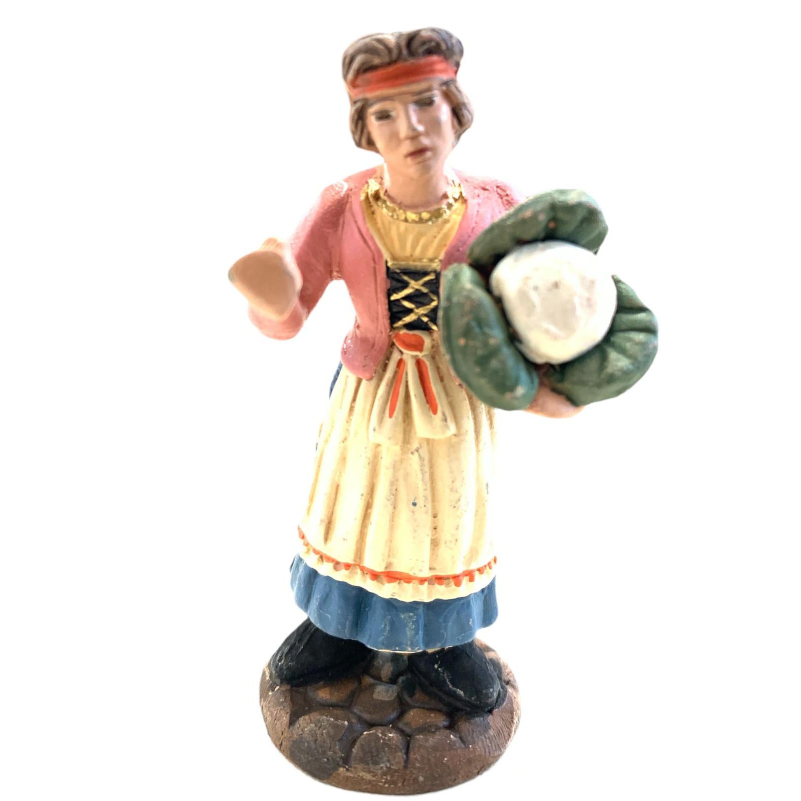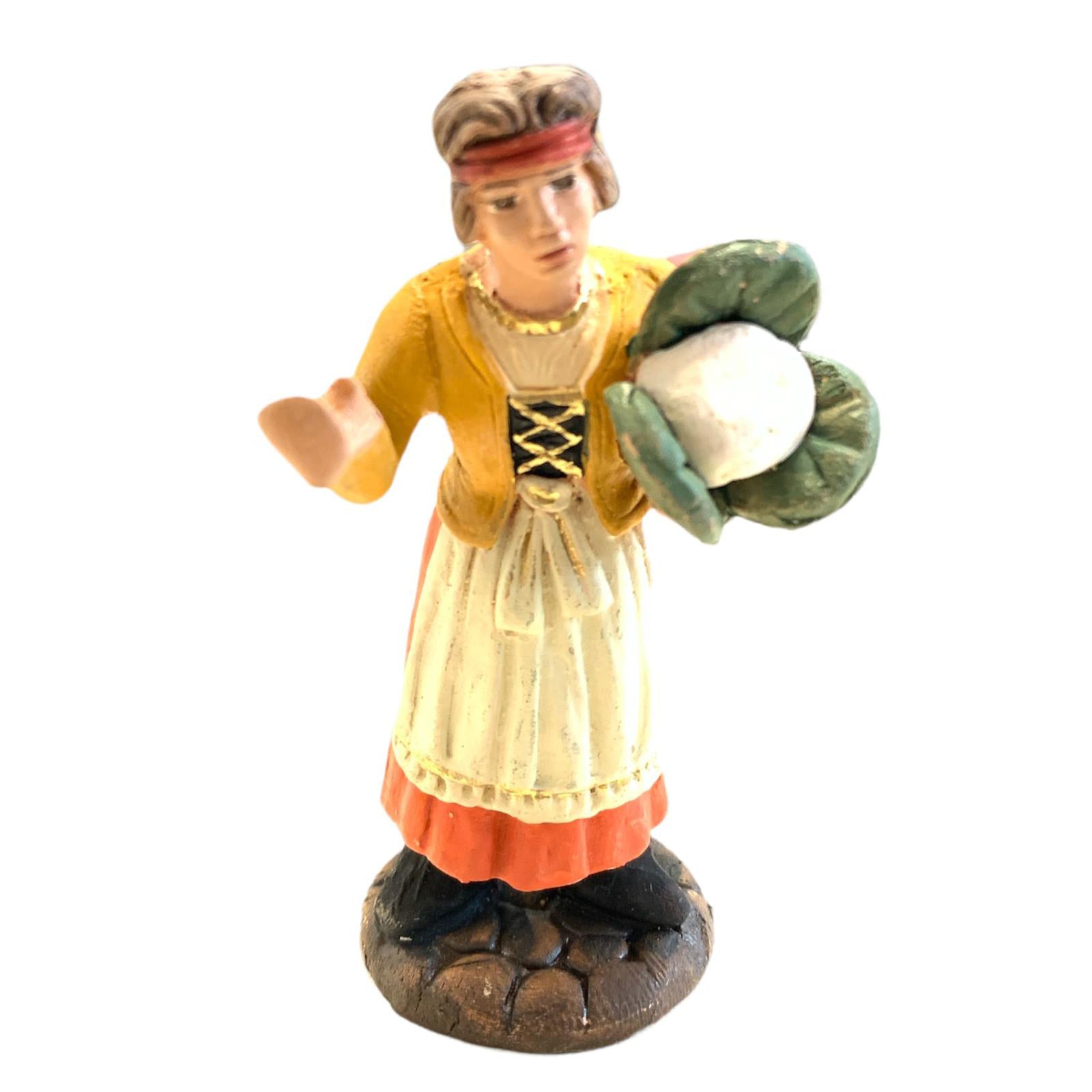 Donna con cavolo statuetta assortita in terracotta artigianale per presepe napoletano da h 7 cm
