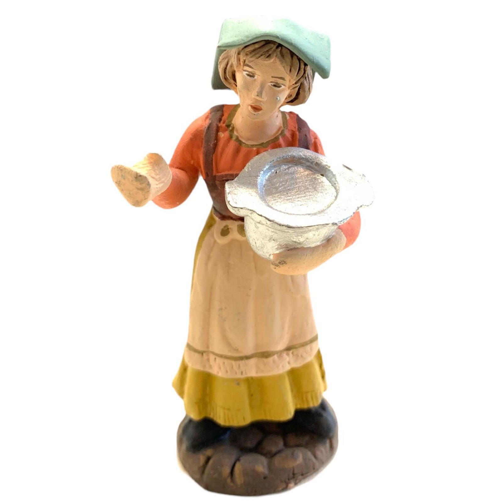 Donna con pentola statuetta in terracotta artigianale per presepe napoletano da h 7 cm