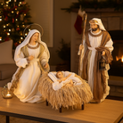 Questa splendida rappresentazione della Natività a tre pezzi è la decorazione perfetta per chi desidera realizzare un presepe di forte impatto visivo e ricco di significato.