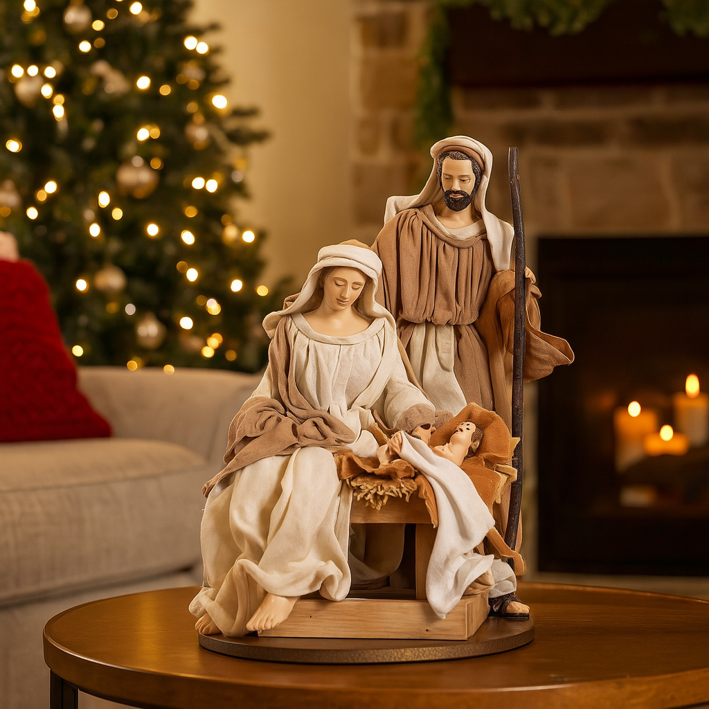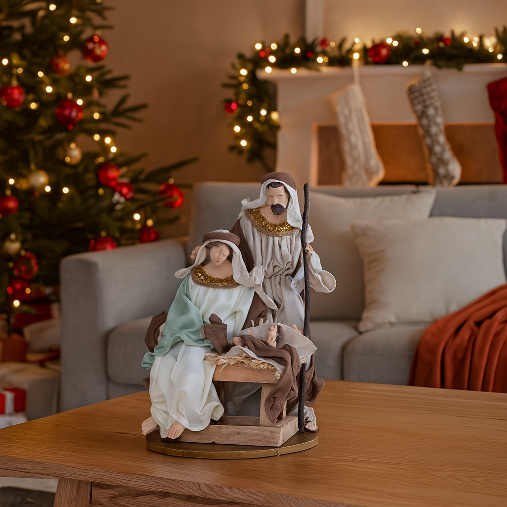 Questa Natività unisce l’eleganza della resina alla delicatezza dei tessuti, creando una scena suggestiva e realistica che arricchirà qualsiasi ambiente nel periodo delle feste.