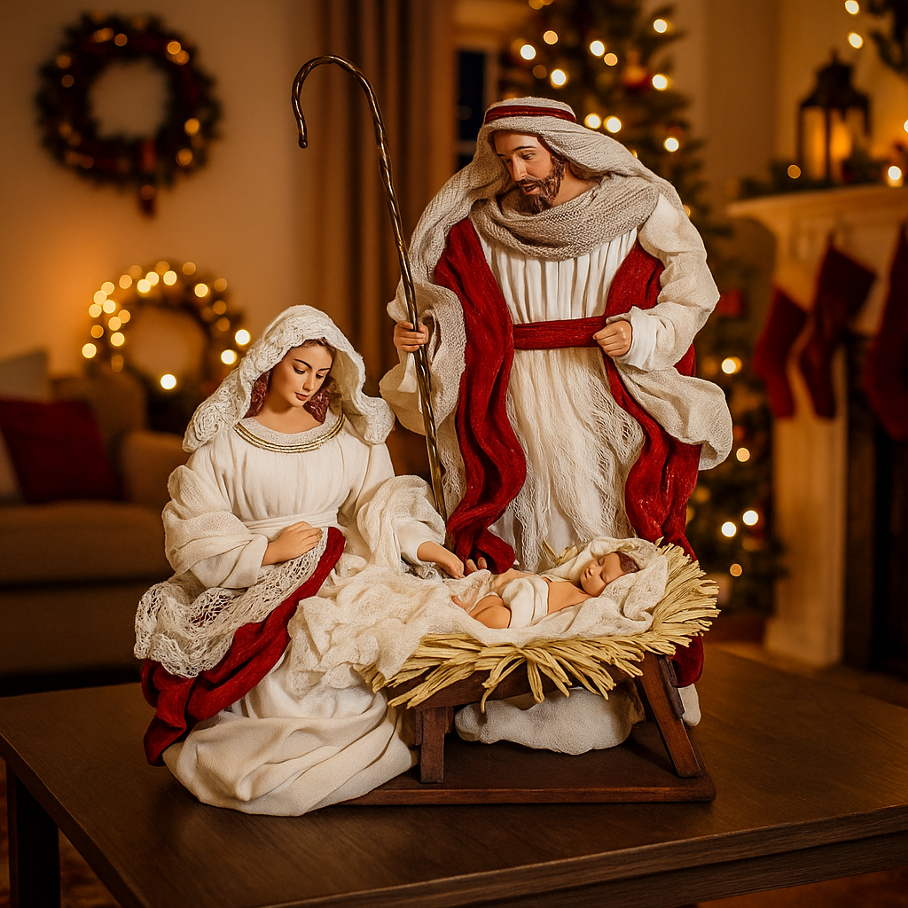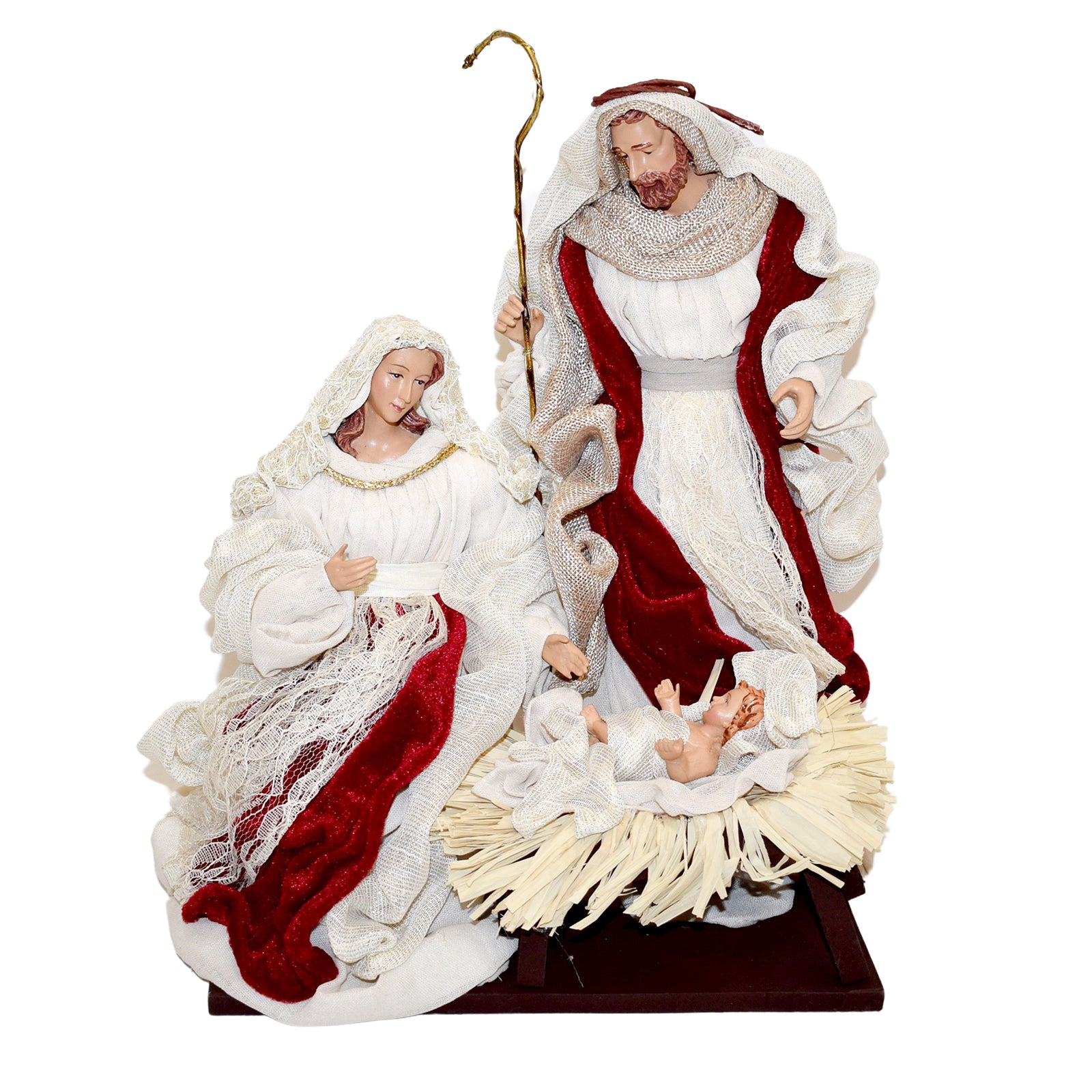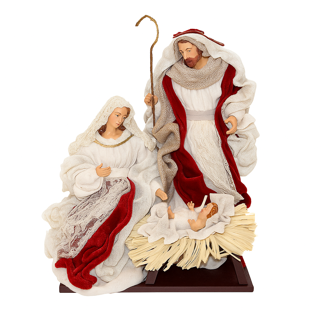 Natività con vestiti in tessuto Beige e Rosso statue per presepe