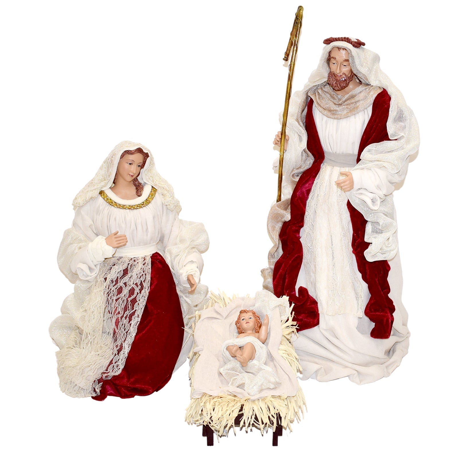 Natività con vestiti in tessuto Beige e Rosso statue per presepe h 68 cm