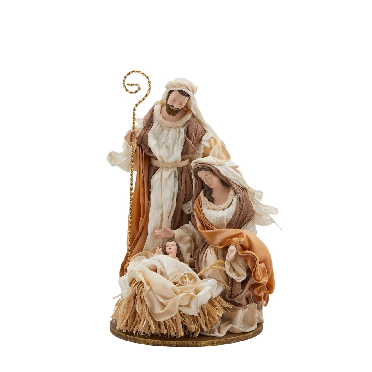 Porta nella tua casa il cuore autentico del Natale con questa raffinata natività monoblocco, realizzata con statue finemente rifinite e vestite in tessuto effetto lino e paglia nei delicati toni champagne. Un pezzo unico che unisce spiritualità, calore e valore decorativo, perfetto per arricchire ogni ambiente con una presenza sobria ma ricca di significato. Le texture naturali dei materiali e le tonalità neutre si integrano con eleganza in contesti sia classici che moderni, rendendo questa natività ideale come centrotavola, elemento da esposizione o dono speciale.