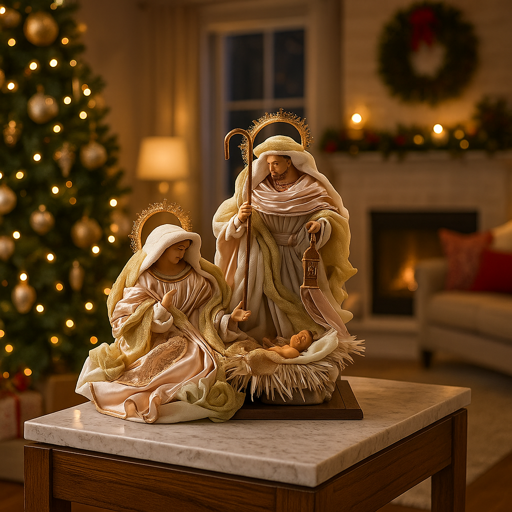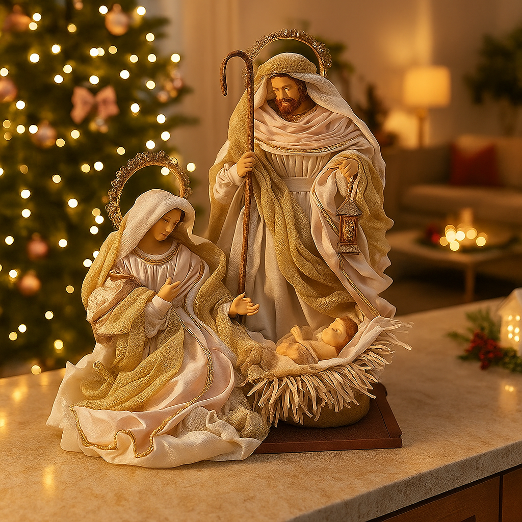 • Composizione unica: le tre figure principali (Gesù Bambino, Maria e Giuseppe) sono unite in un solo blocco per una maggiore stabilità e semplicità d’uso