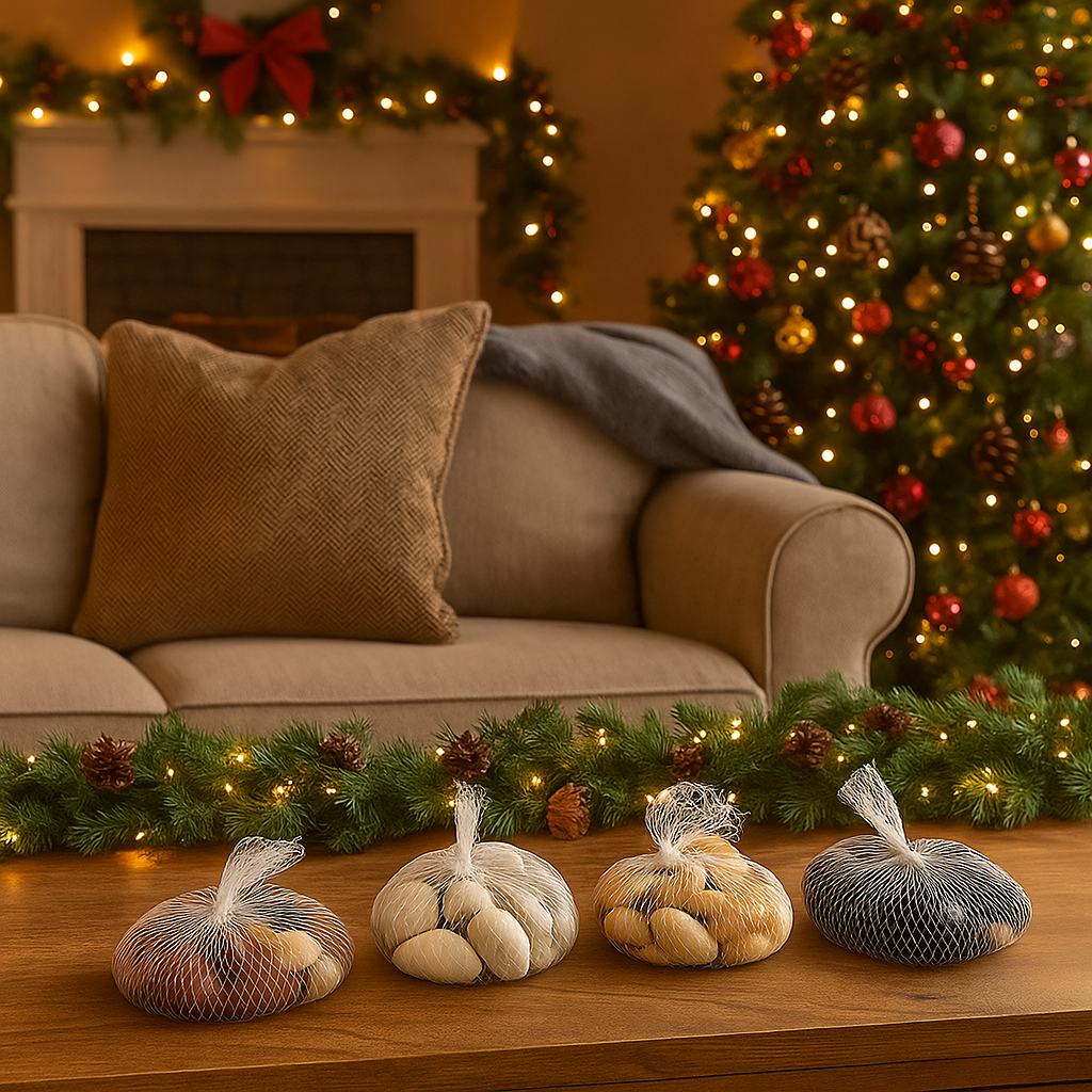 Sacco da 800 gr di Ciottoli di marmo lucidi ideali per l'arredo di giardini e aiuole, riempimento di fontane, vasi e fioriere, decorazione di vialetti, ornamento di acquari e tanti altri usi. Ciottoli da giardino, arredo urbano, giardinaggio e decorazioni.