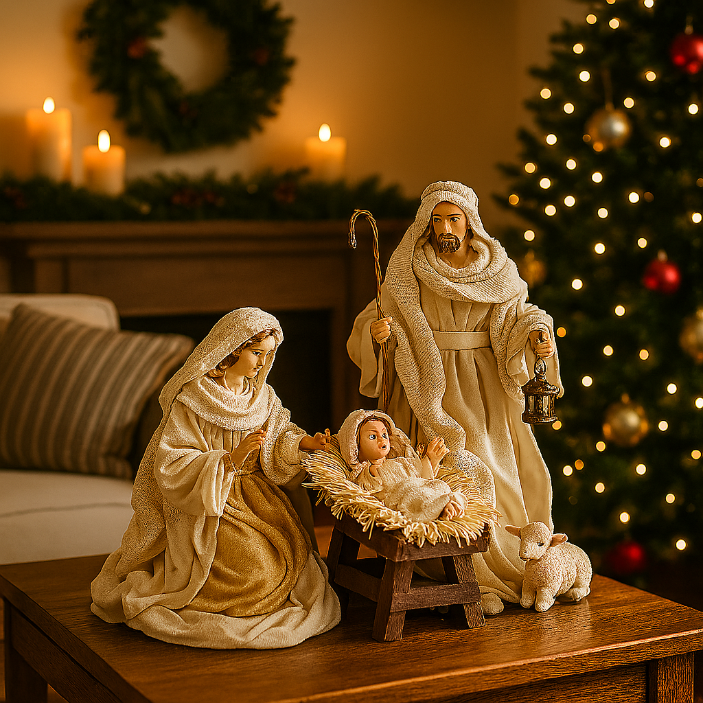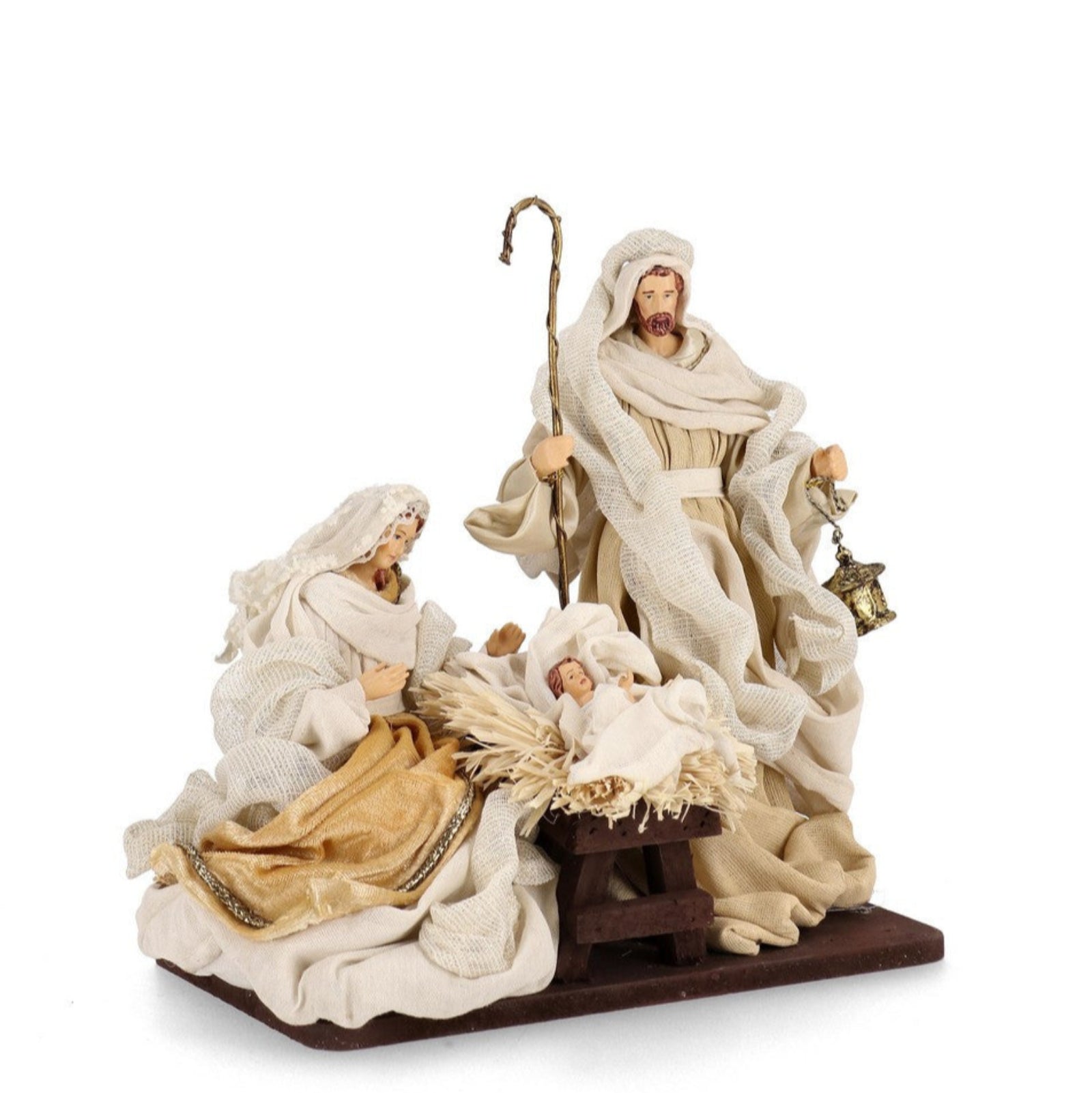 Realizzata in resina, che consente di modellare con precisione i dettagli dei volti, delle mani e delle pieghe degli abiti, garantendo un aspetto realistico e curato
