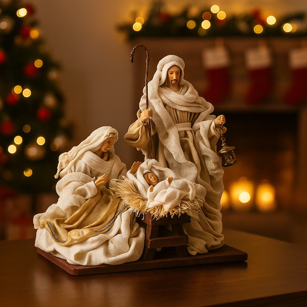Questa delicata rappresentazione della Sacra Famiglia è una decorazione natalizia perfetta per portare in casa un simbolo di spiritualità, amore e raccoglimento.