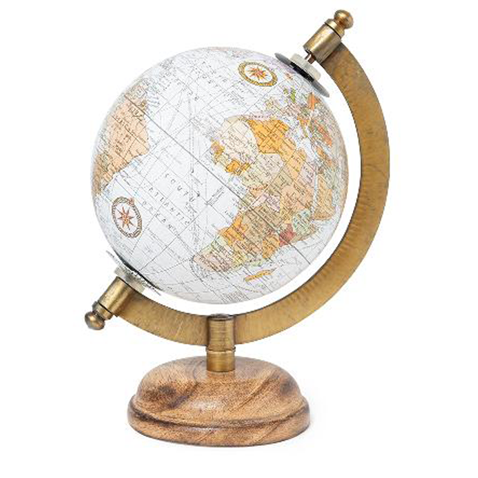 Mappamondo con base in legno, decorazione per interno, look elegante e moderno