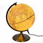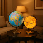 Questo tipo di illuminazione interna non solo enfatizza la bellezza del mappamondo come oggetto decorativo ma contribuisce anche a creare un'ambientazione calda e accogliente, ideale per studi, salotti, camere da letto o uffici che desiderano un tocco di sofisticatezza e un riferimento culturale.