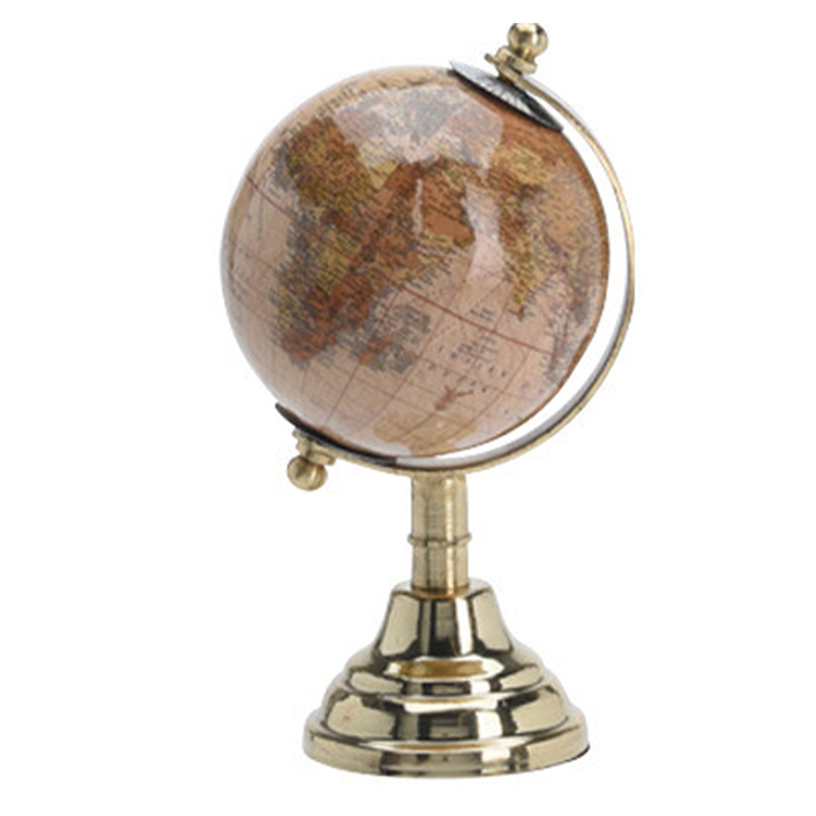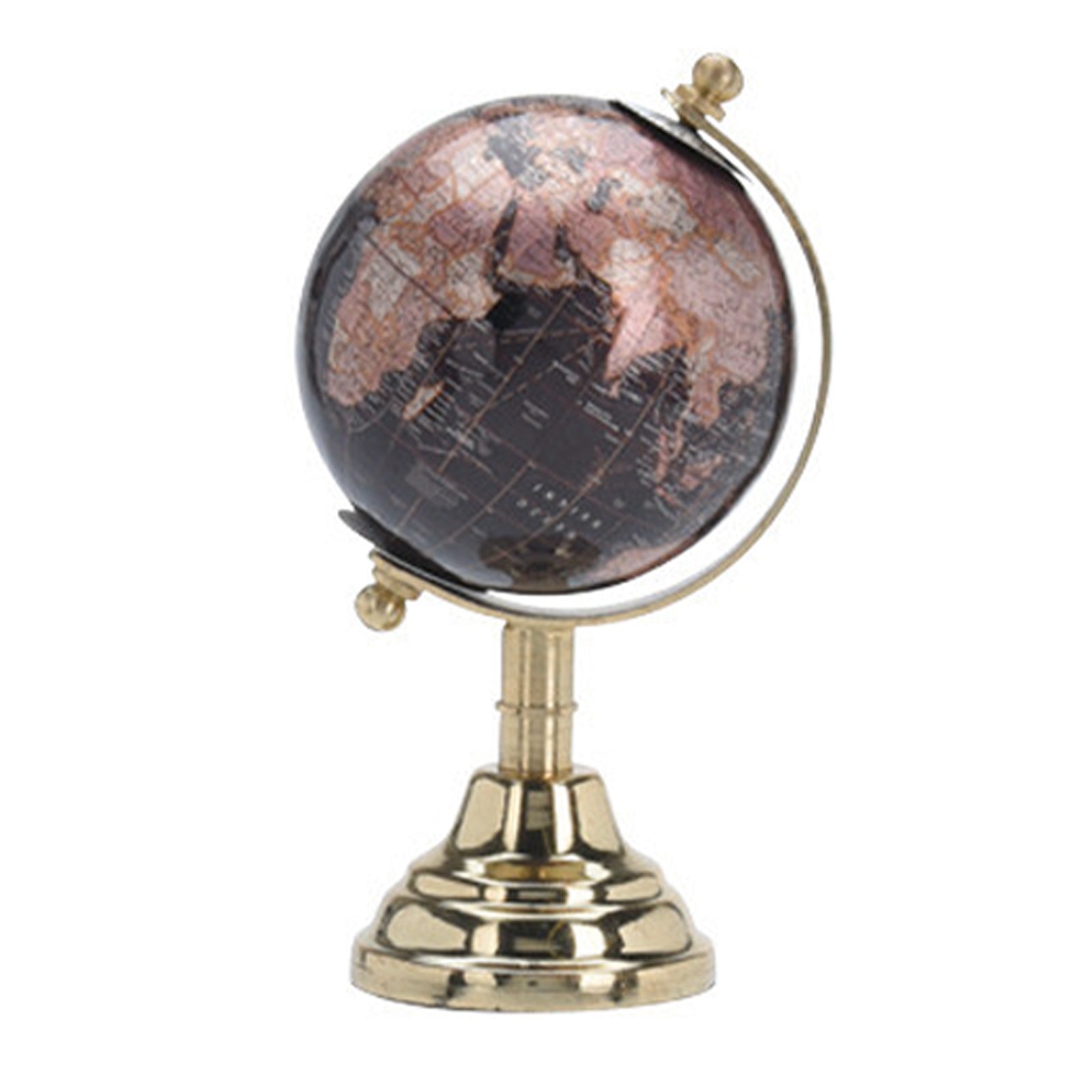 Mappamondo con base in metallo lucido per decorazione interno h 15 cm