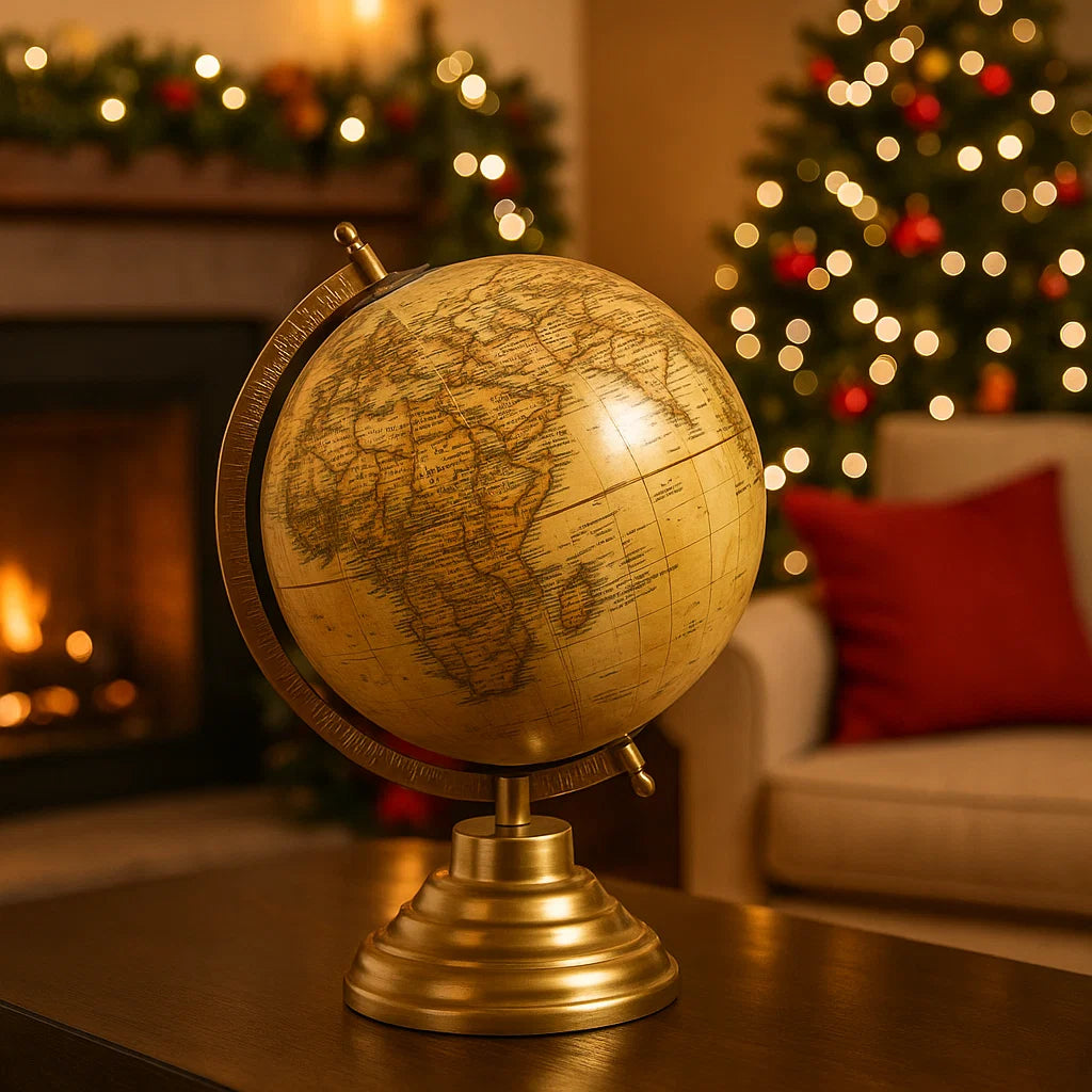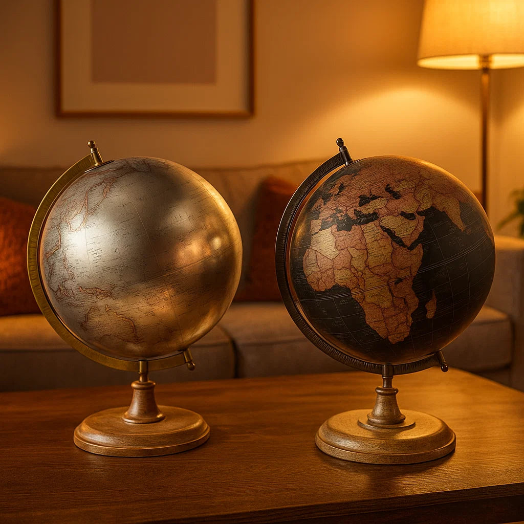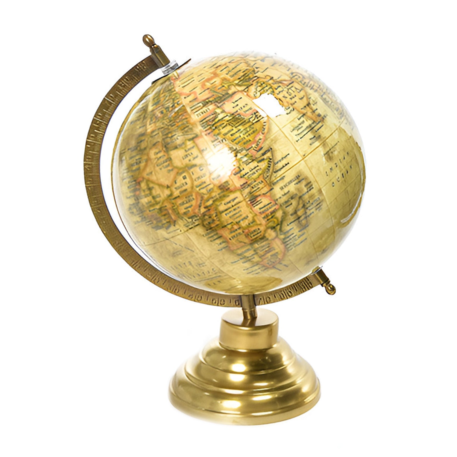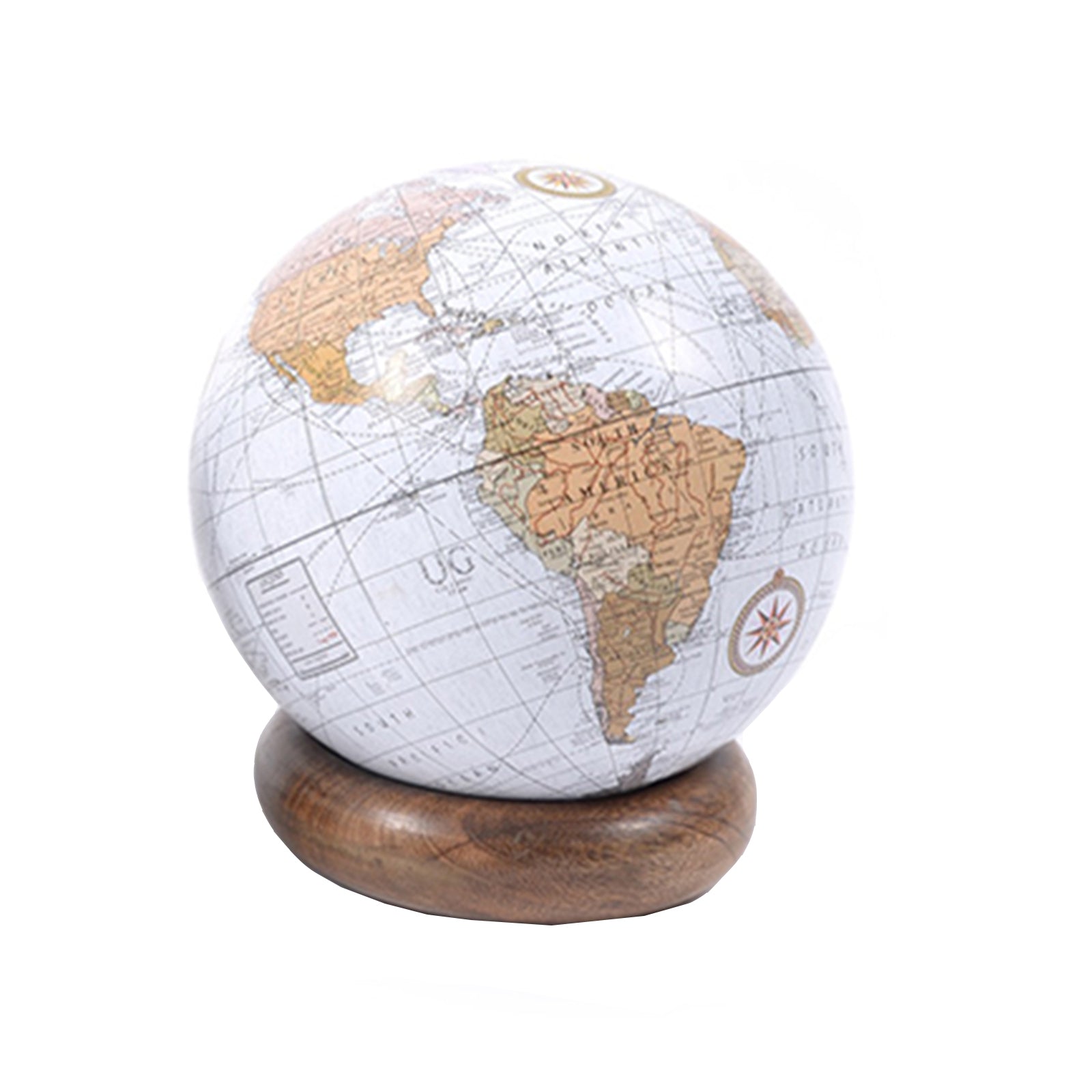 La base in metallo non solo aggiunge un tocco di eleganza e modernità al design complessivo ma assicura anche una solida stabilità, permettendo di collocare il mappamondo su varie superfici come scrivanie, mensole, o comodini.