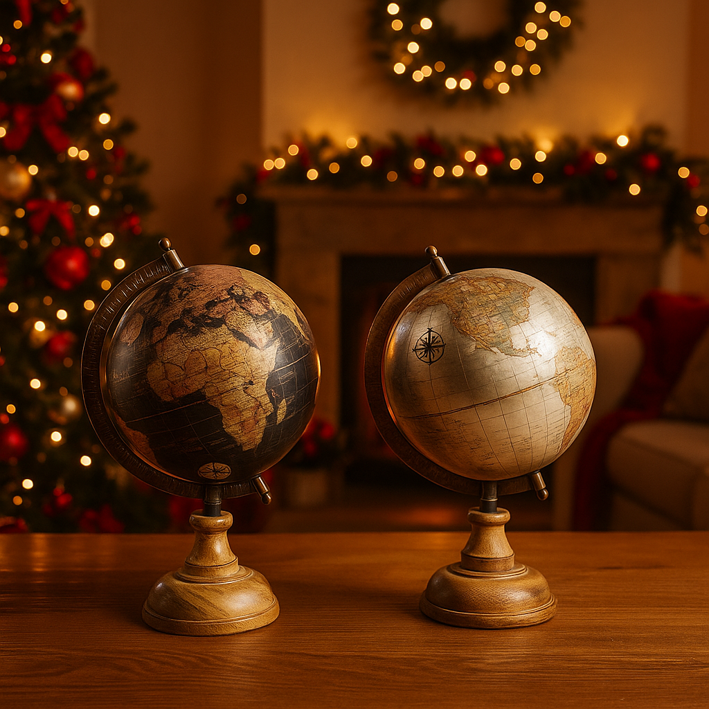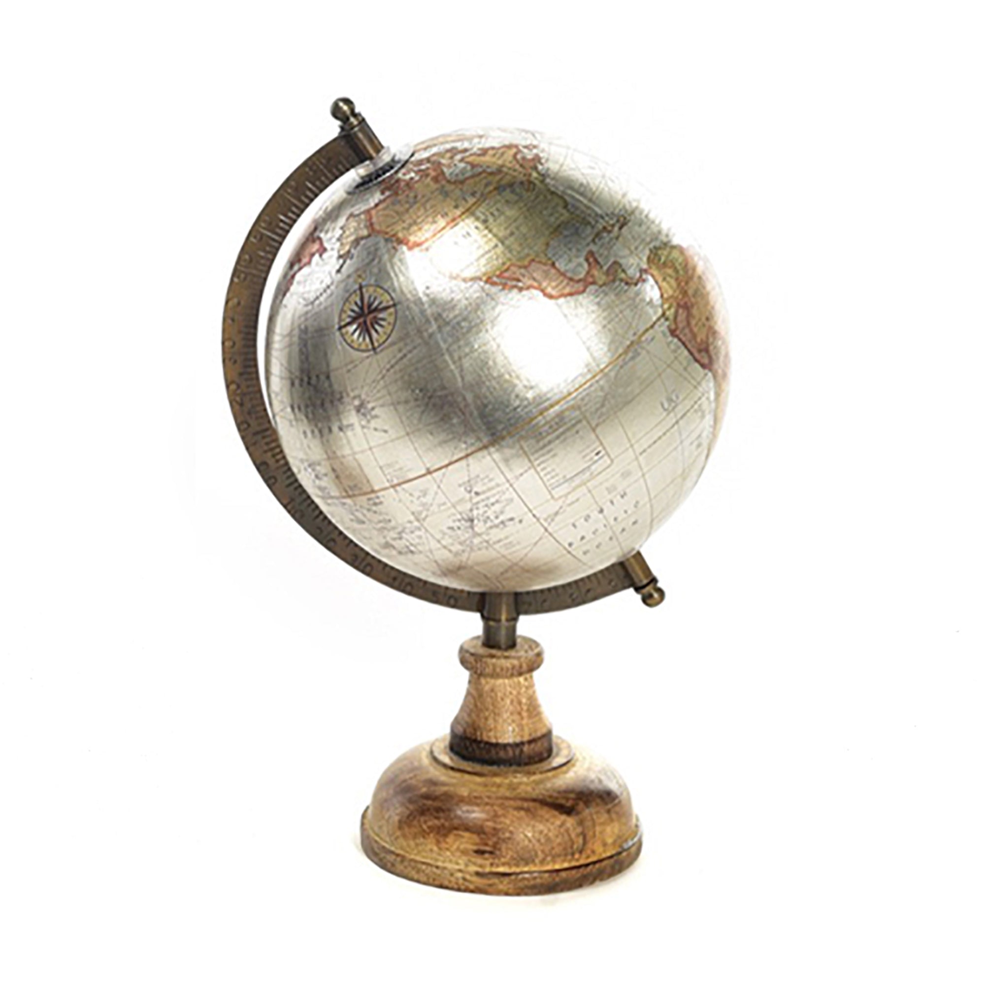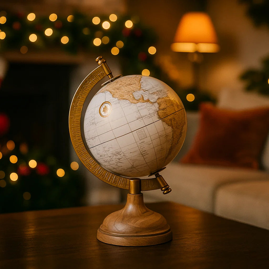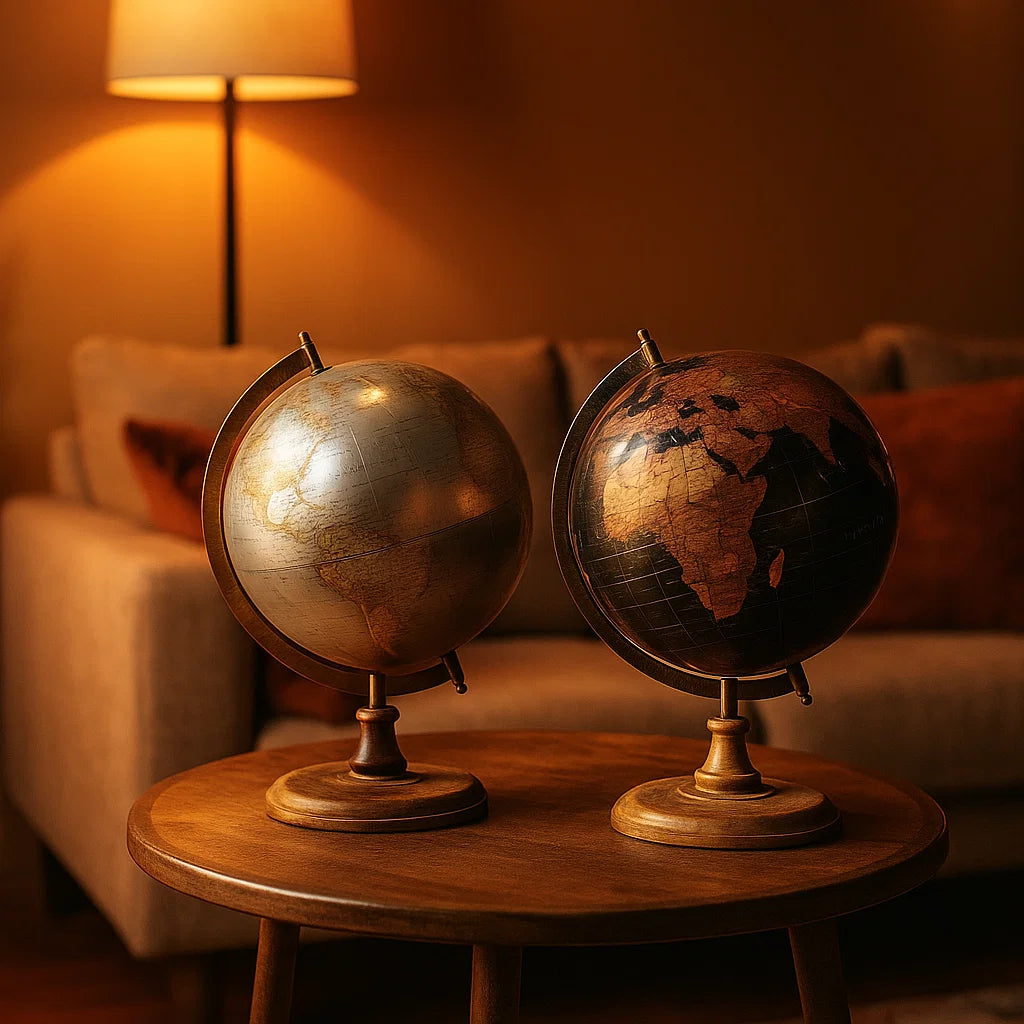 La base in metallo non solo aggiunge un tocco di eleganza e modernità al design complessivo ma assicura anche una solida stabilità, permettendo di collocare il mappamondo su varie superfici come scrivanie, mensole, o comodini.