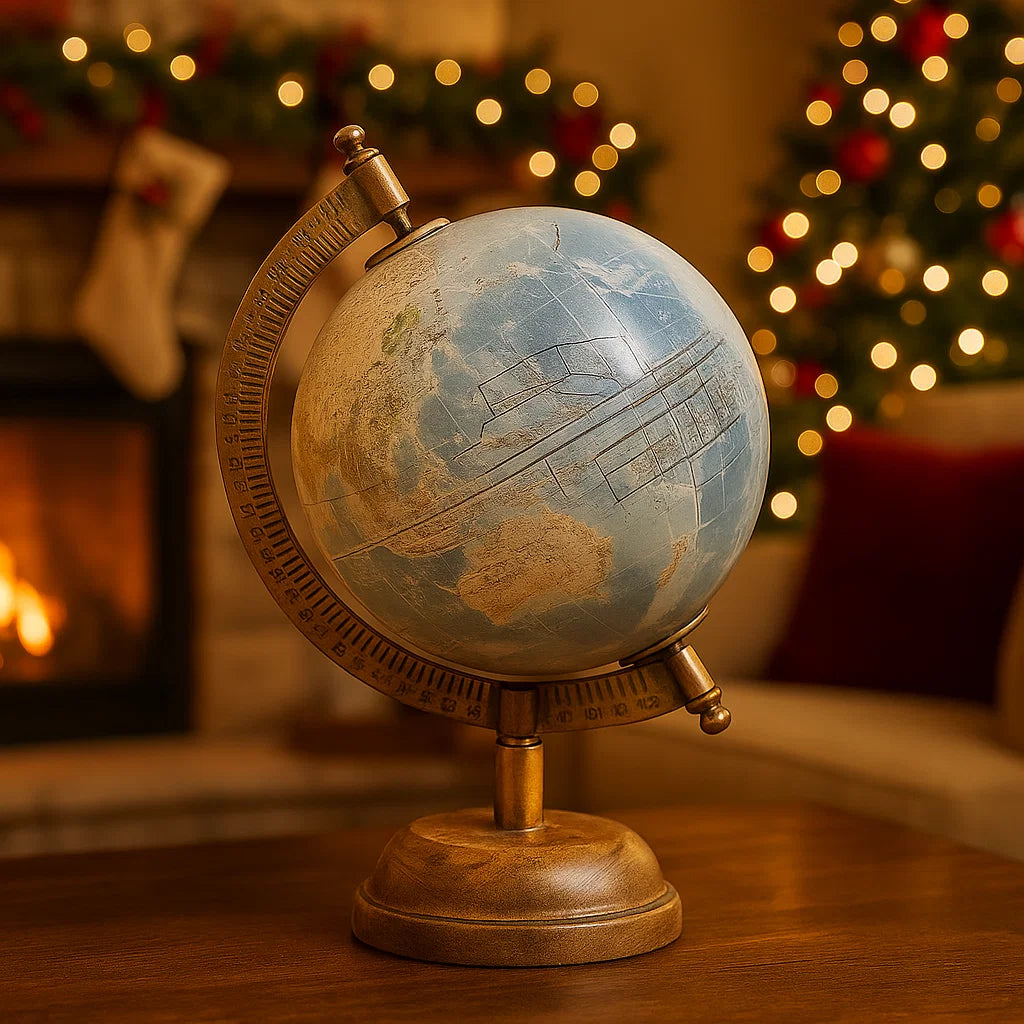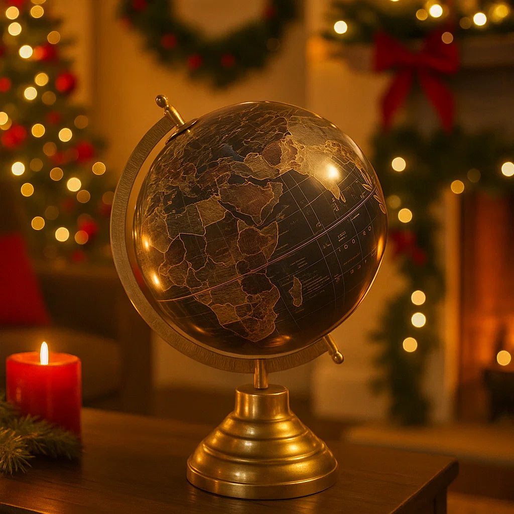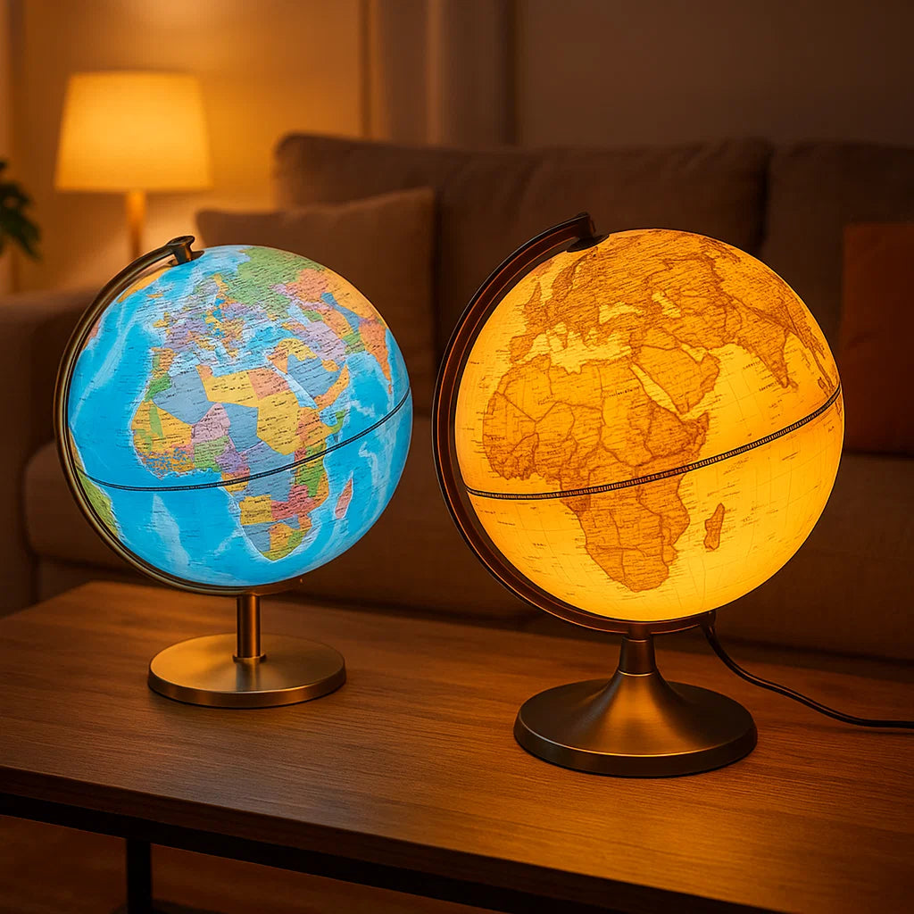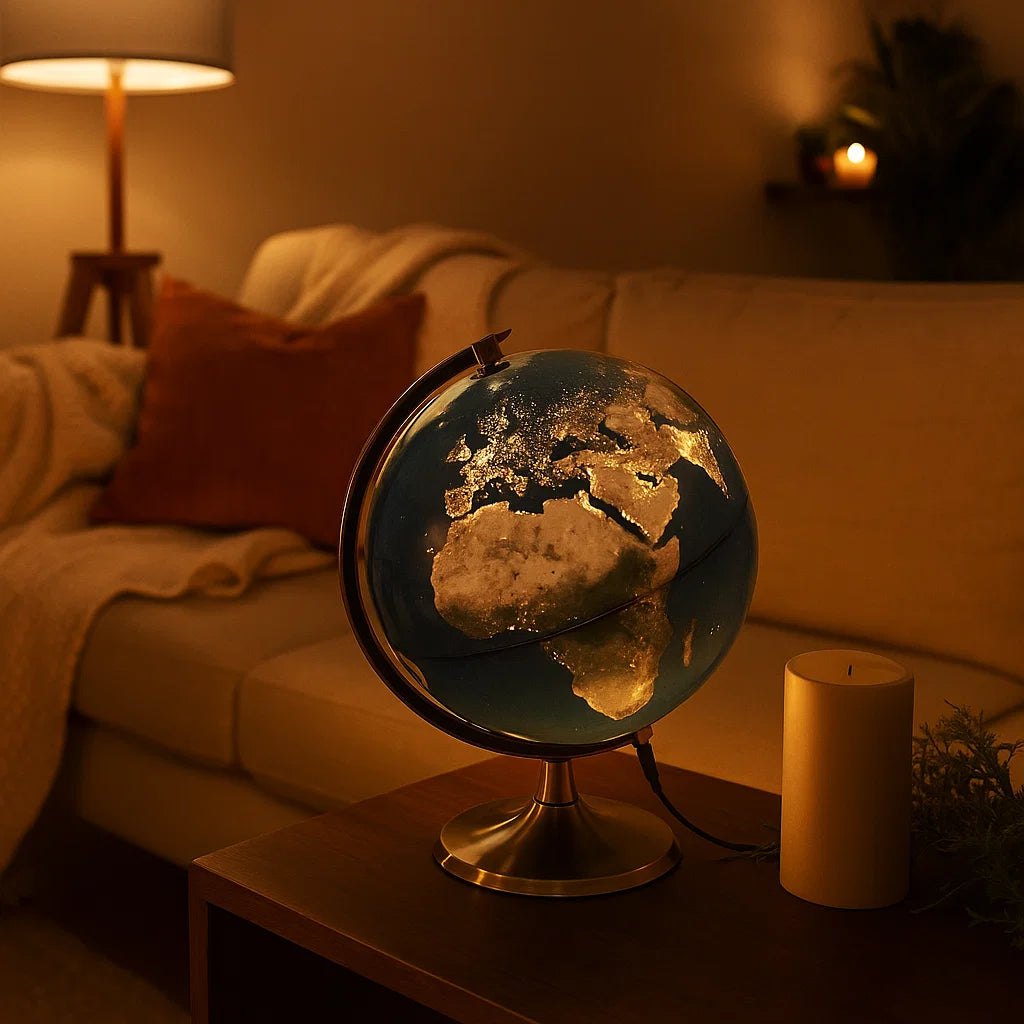 Questo mappamondo presenta una caratteristica distintiva: una rappresentazione del globo terrestre focalizzata sulle vedute notturne offrendo una visione affascinante e realistica della Terra di notte.