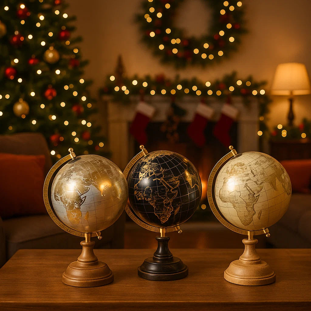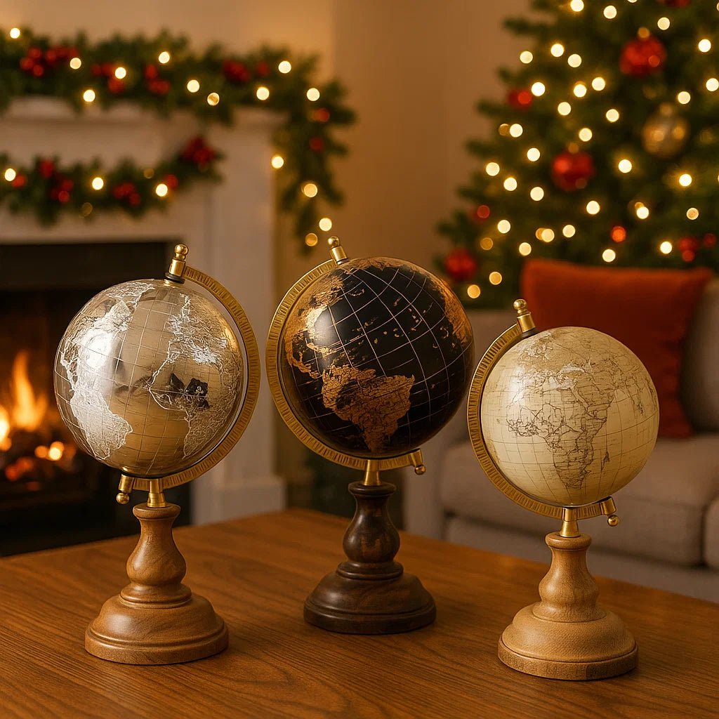 La cartografia in rilievo e il meridiano graduato in metallo aggiungono un tocco di autenticità e precisione.