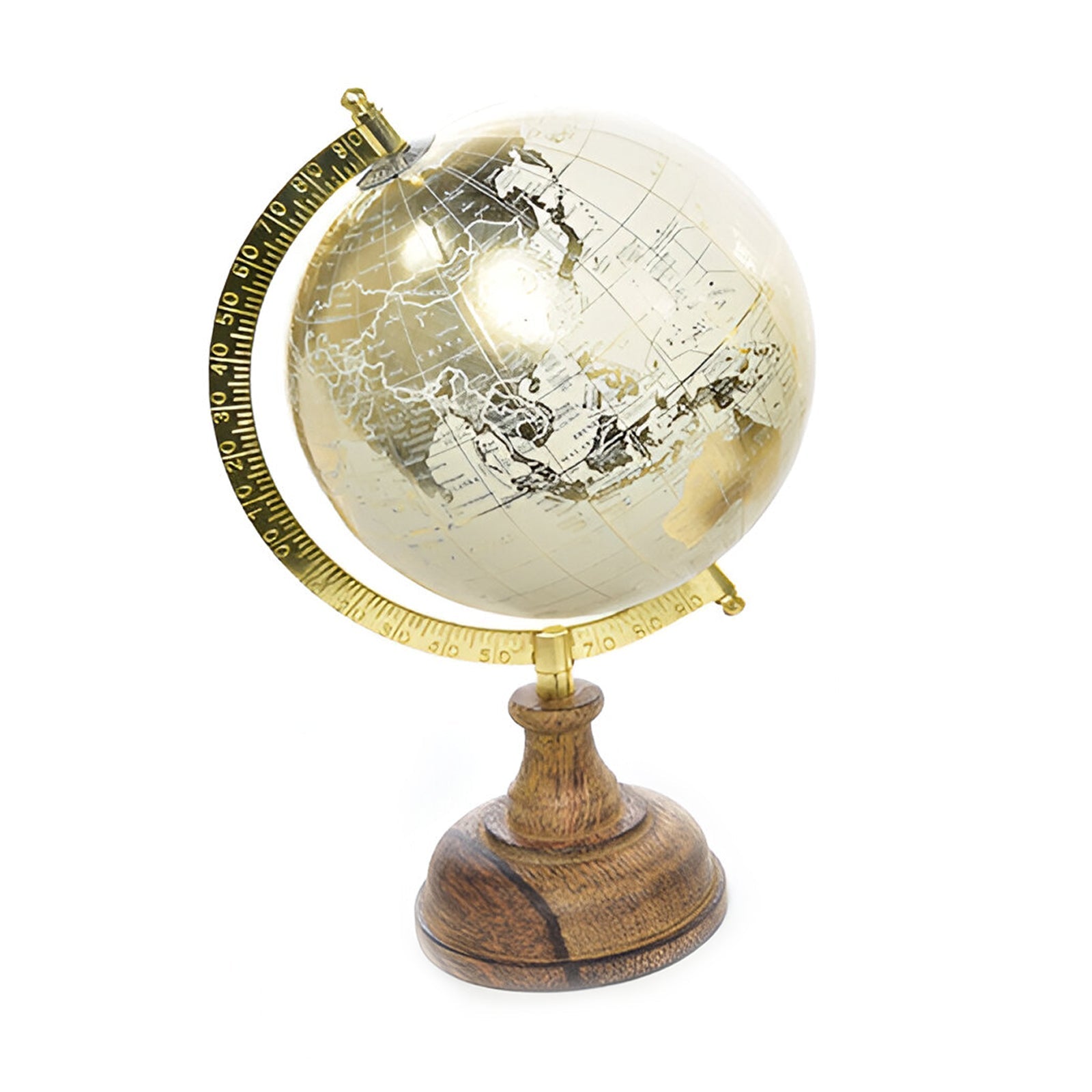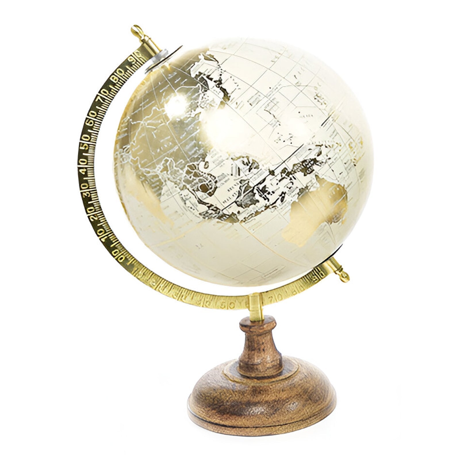 Mappamondo per interno con struttura in ottone chiaro, base in legno