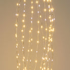 Questa cascata di luci ha 15 fili in metallo color argento.