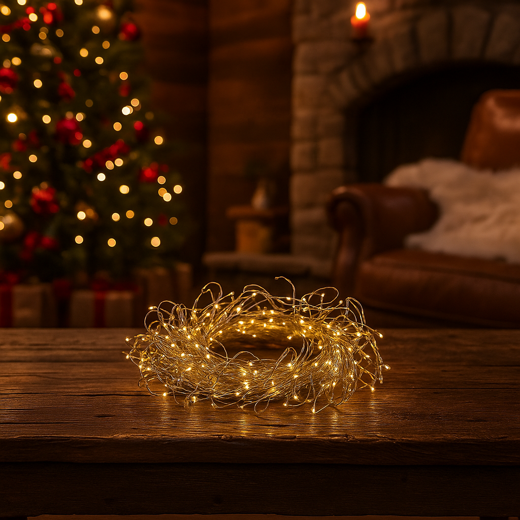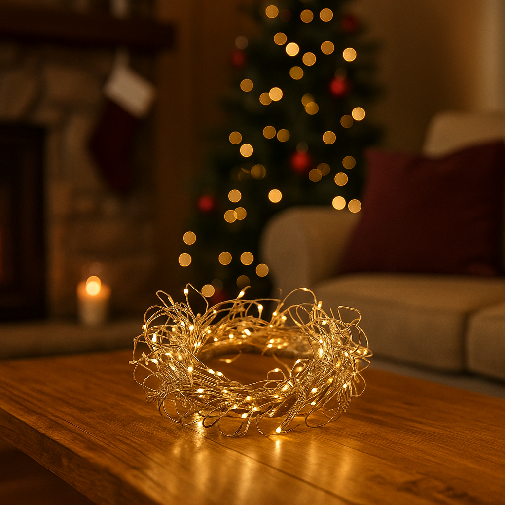 Puoi usarle attorno ad un mobile o arrotolarle sopra ad una mensola, dentro ad un vaso o tra il fogliame di una pianta.