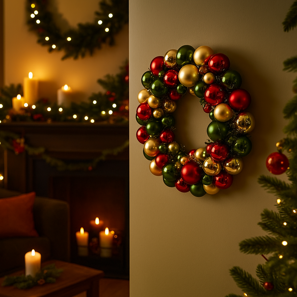 È pensata per essere appesa come ornamento centrale su un albero di Natale, dove diventa un punto luce scenografico tra palline rosse, oro e ghirlande, oppure può essere utilizzata su porte, pareti o sopra un camino per impreziosire la casa durante le feste.