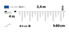 La Ice Cluster Light SFL IL340H80 T è una tenda luminosa decorativa di alta gamma della linea StarFall Light, progettata per offrire un'illuminazione scenografica e versatile, perfetta sia per ambienti interni che esterni, grazie alla certificazione IP44 che ne garantisce la resistenza agli agenti atmosferici.