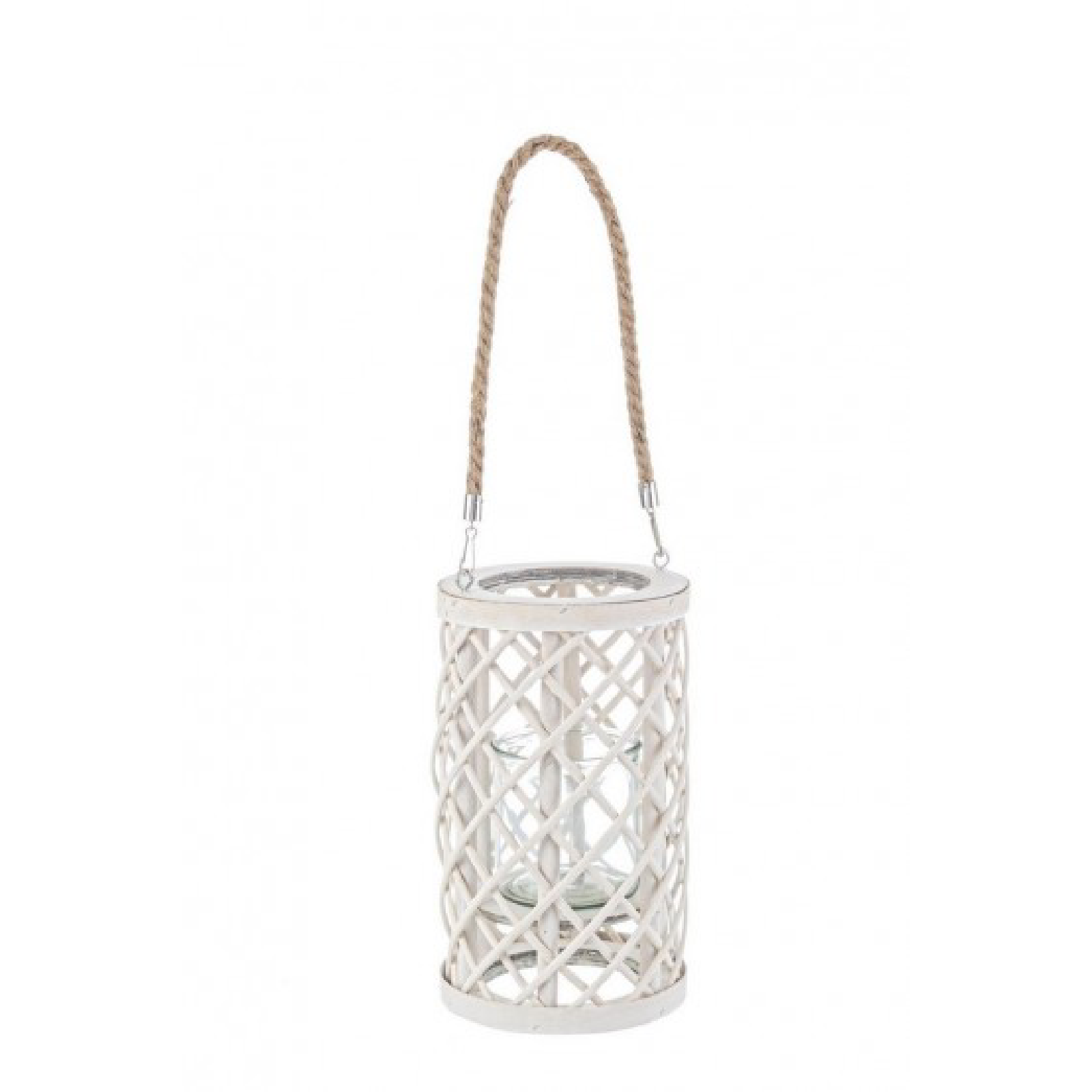 Lanterna Silves bianca con manico in corda e vetro