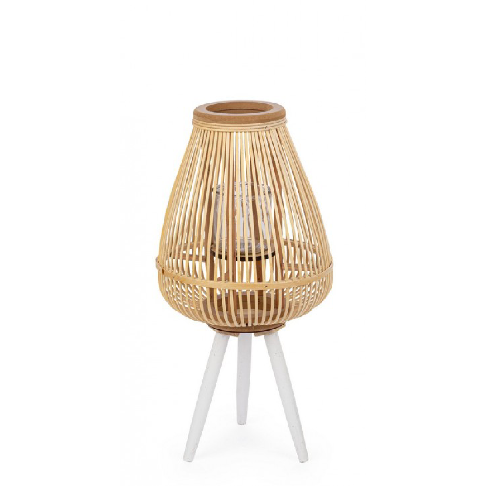 Lanterna tre piedi Ninette legno di bamboo e vetro da esterno