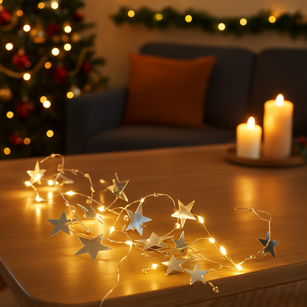 Luci di natale Micro Led e Stelle in metallo a batteria per interno