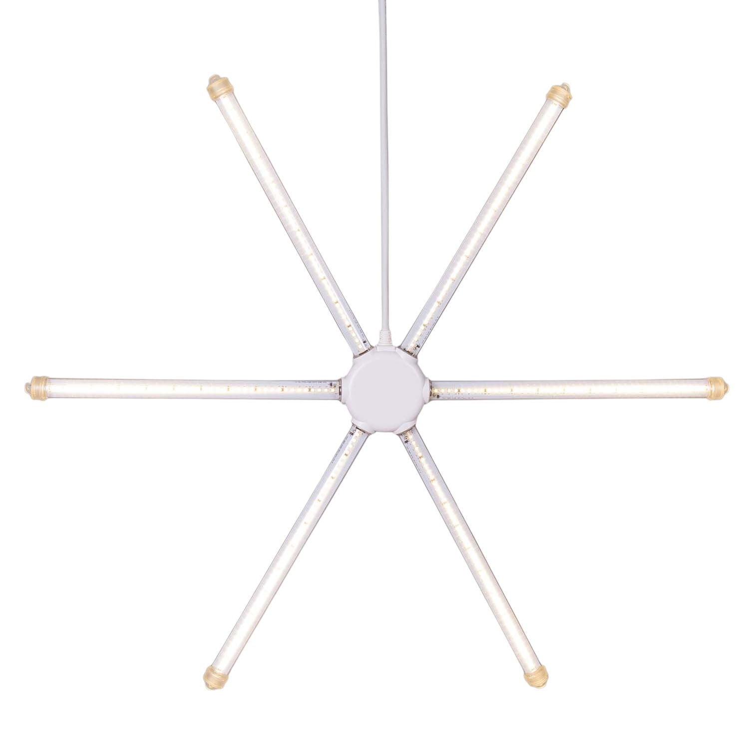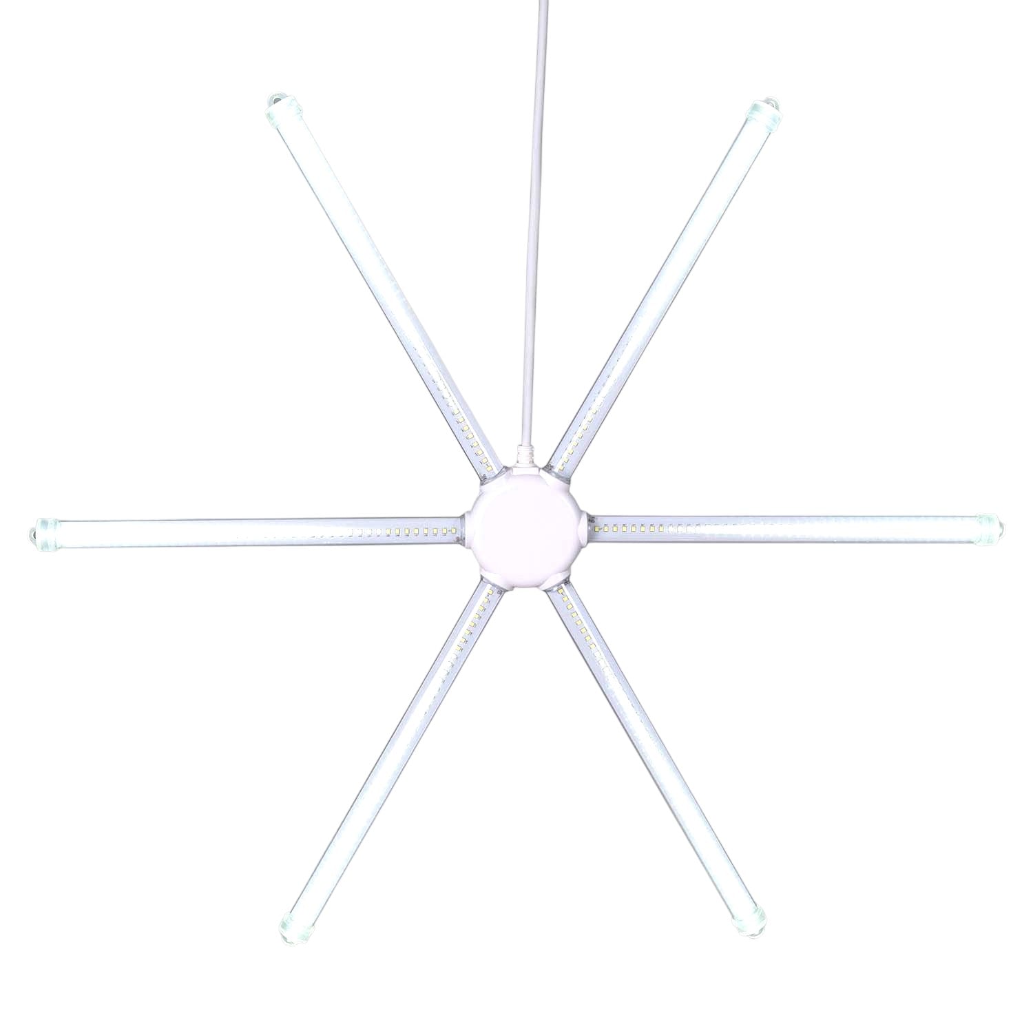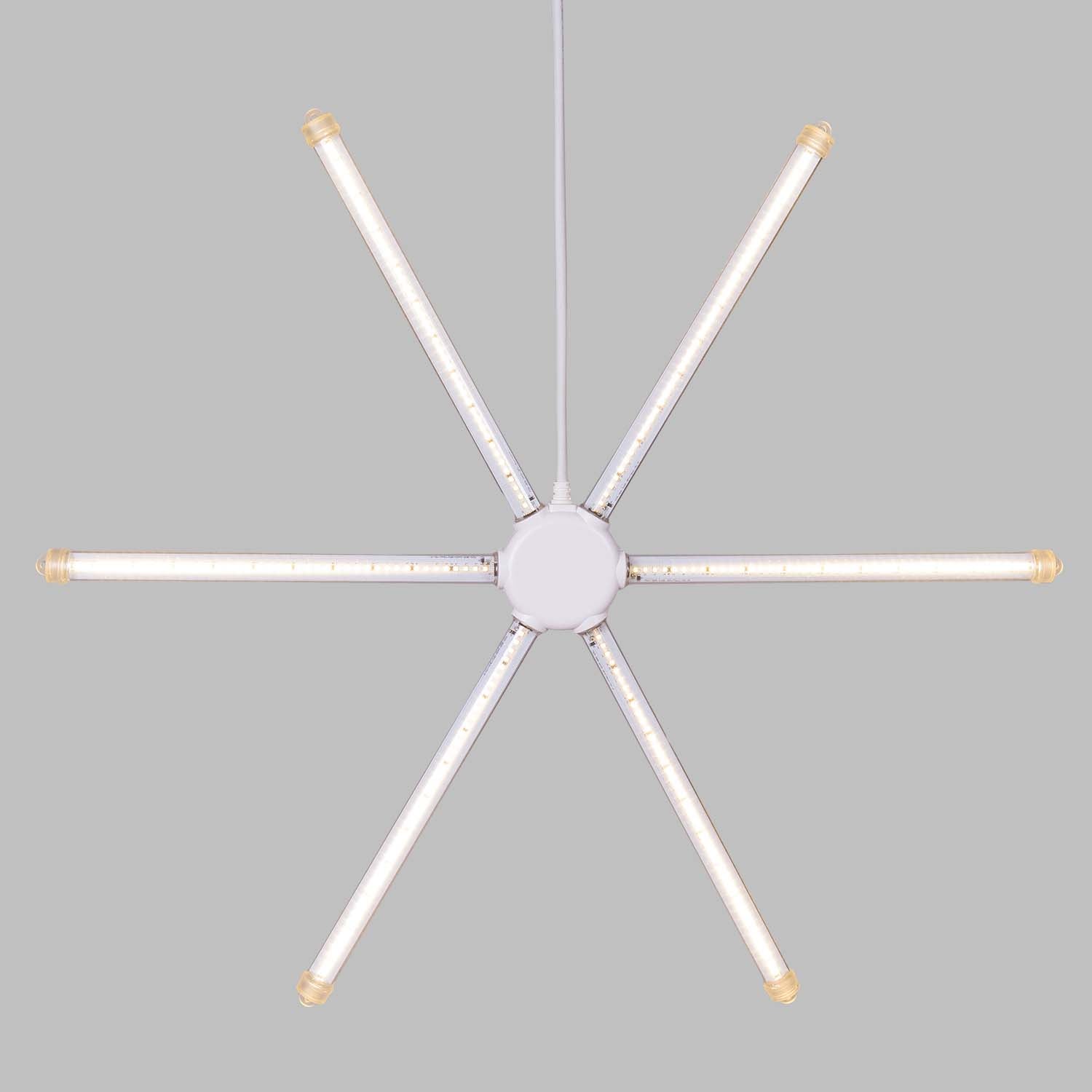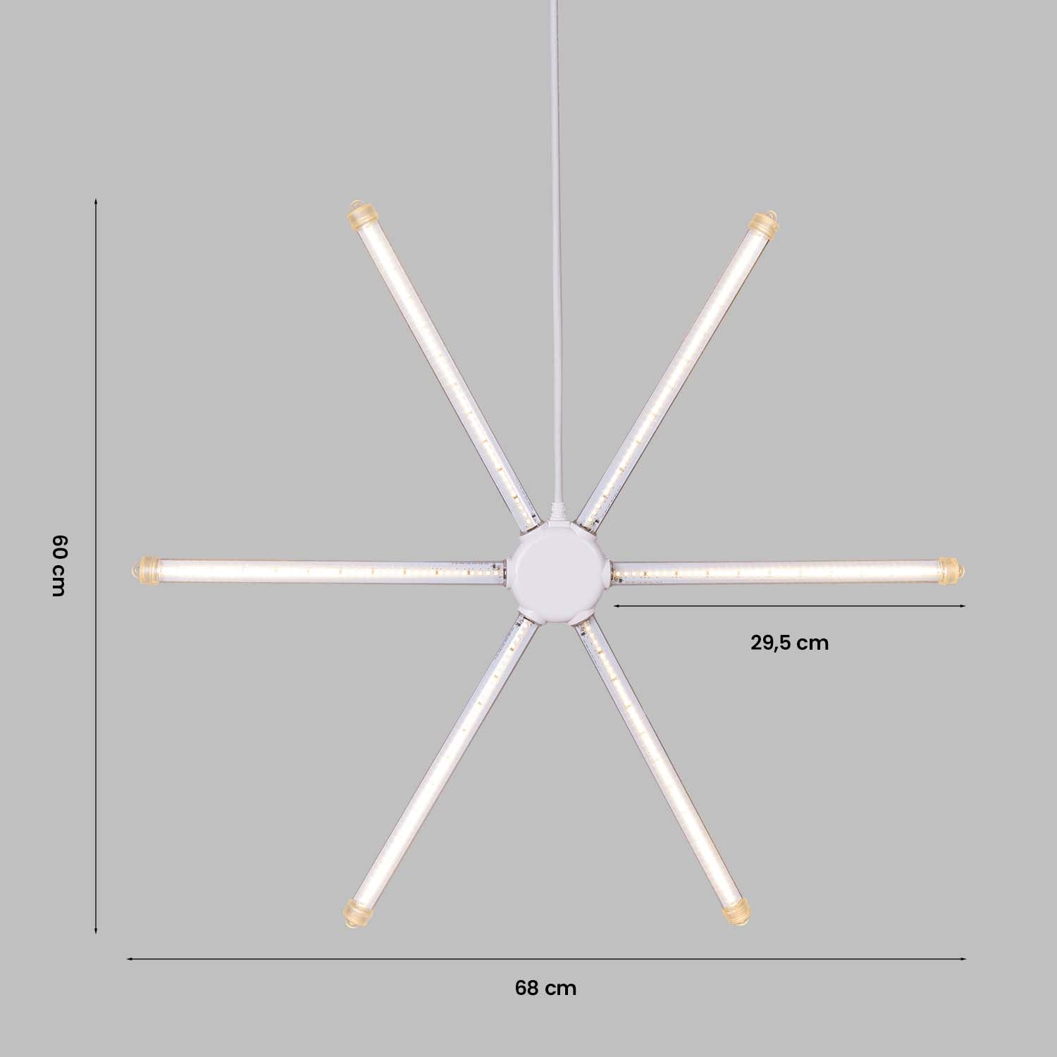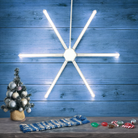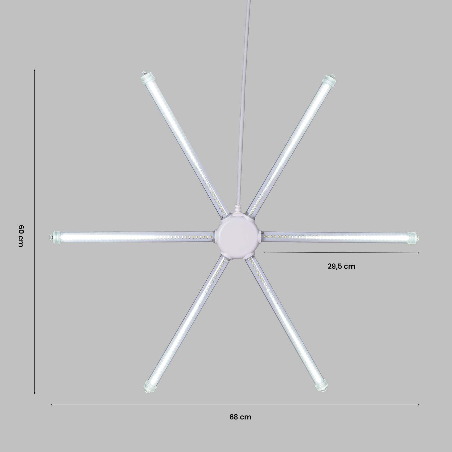 Quando alimentata, tramite il cavo incluso, genera automaticamente un effetto luminoso sincronizzato: i fasci di luce si propagano dal centro verso le estremità dei tubi, creando un pattern di illuminazione dinamico e continuo.