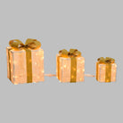 Luce di Natale a forma di pacco regalo con fiocco color oro, adatto per uso interno.