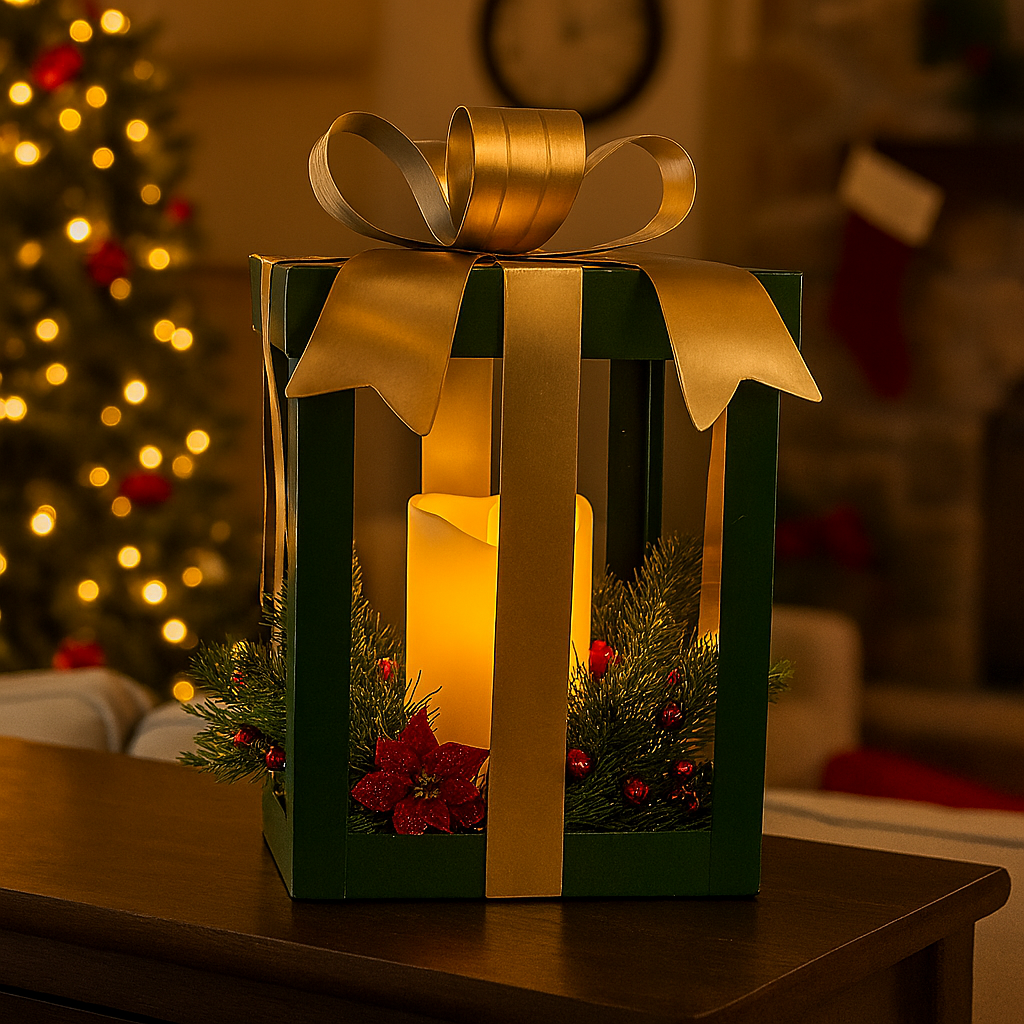 Questo raffinato pacco regalo è una decorazione natalizia che unisce l’eleganza di un design curato con la praticità di materiali resistenti e durevoli.