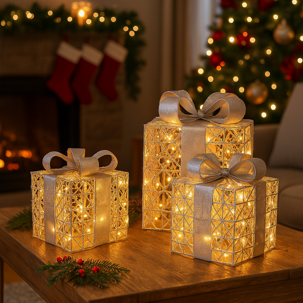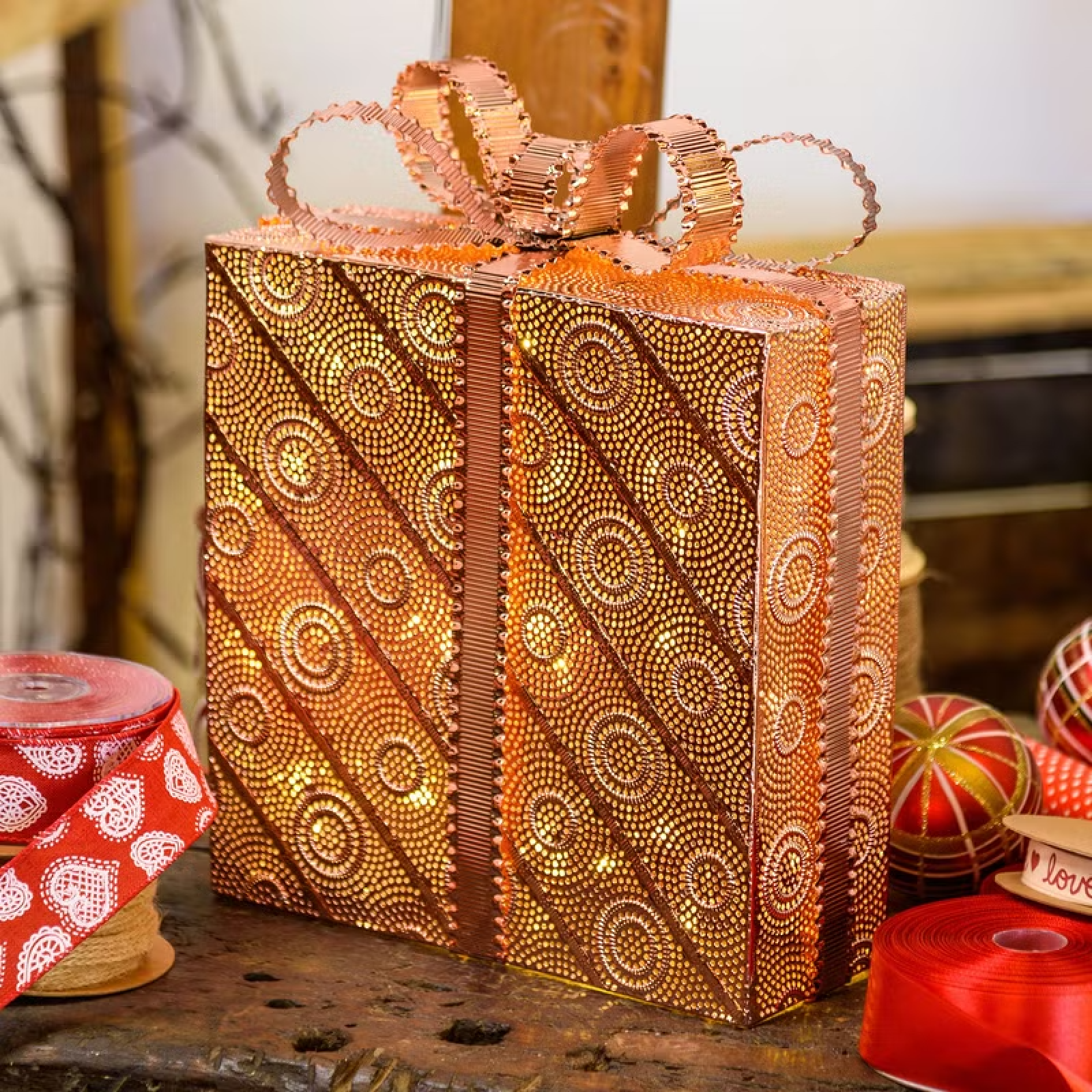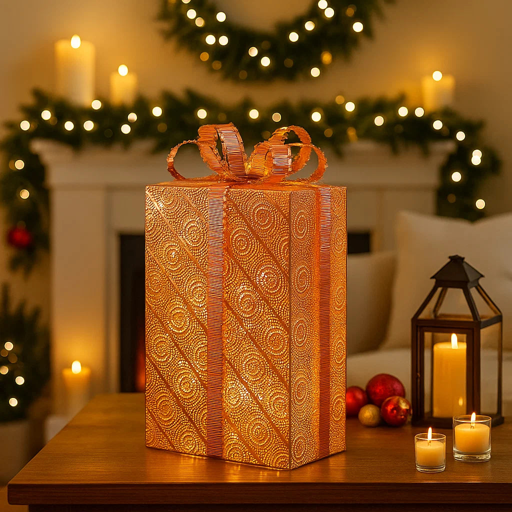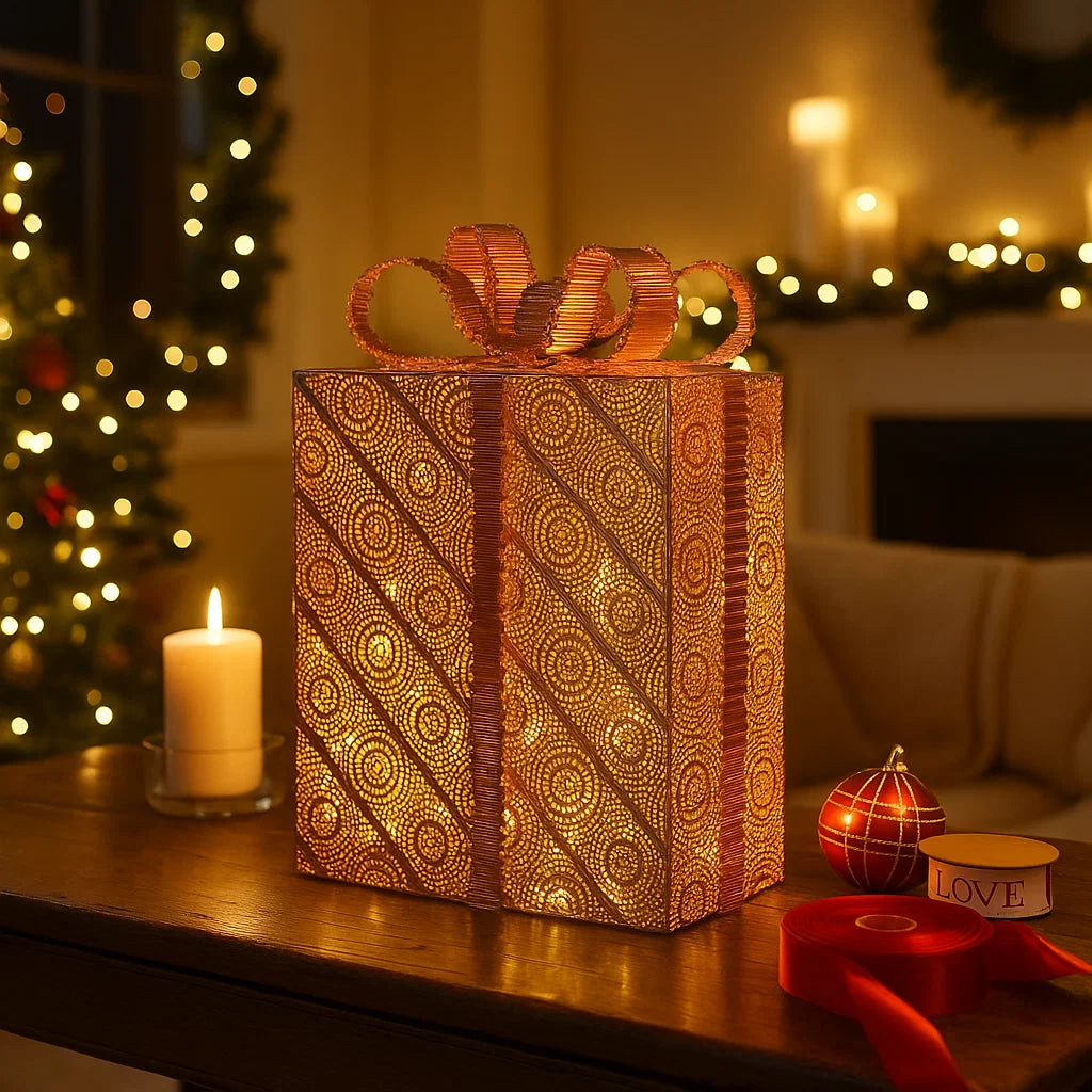 Pacco Regalo rame, 50 led bianco caldo per decorazioni natalizie