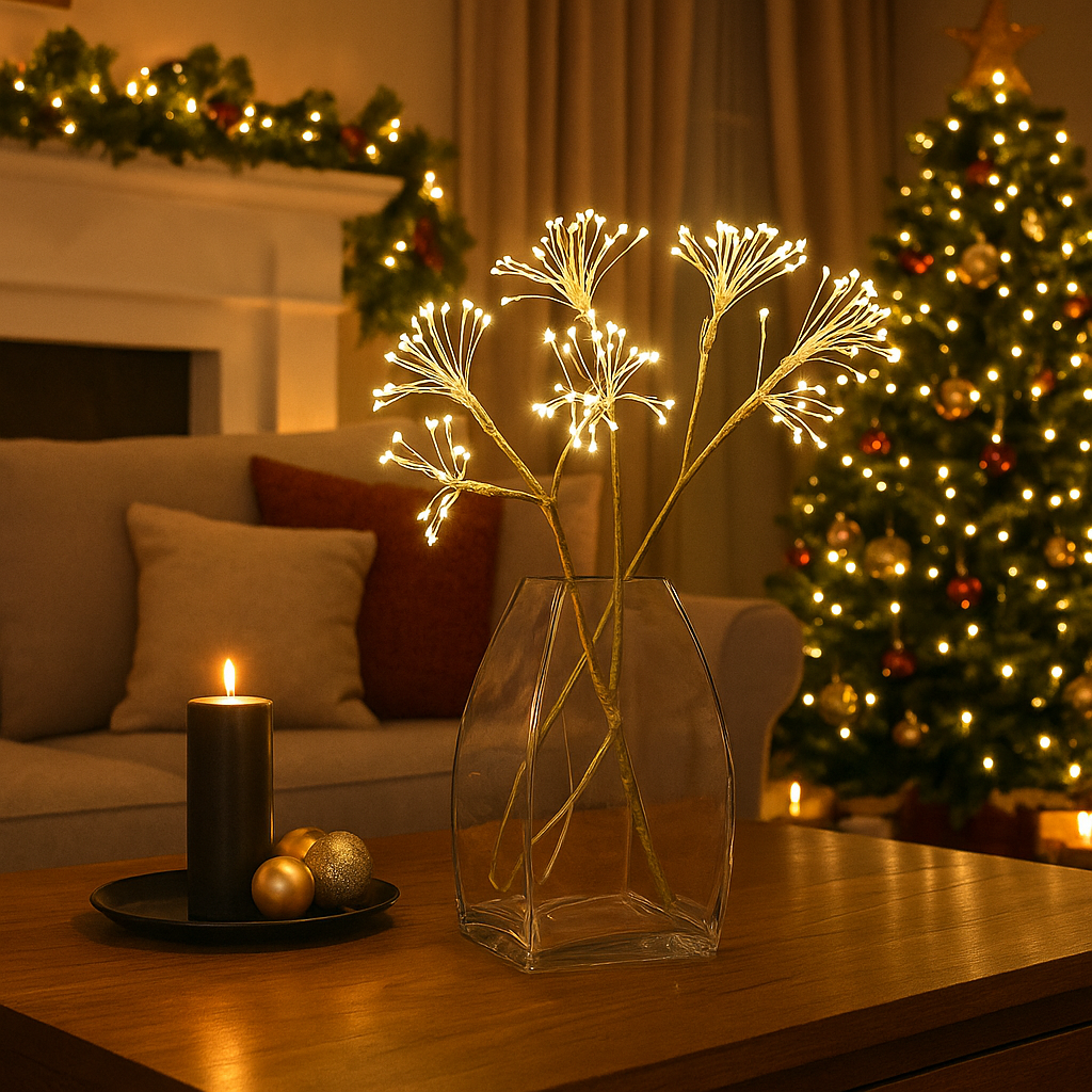 Perfetti per chi desidera un tocco elegante e moderno nelle decorazioni natalizie, questi rami diffondono una luce calda e avvolgente che crea subito un ambiente accogliente.