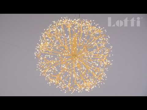Questa sfera è composta da rami bianchi che si diramano da un'anima centrale rigida, terminando in ciuffi di microled che creano un effetto luminoso unico.
