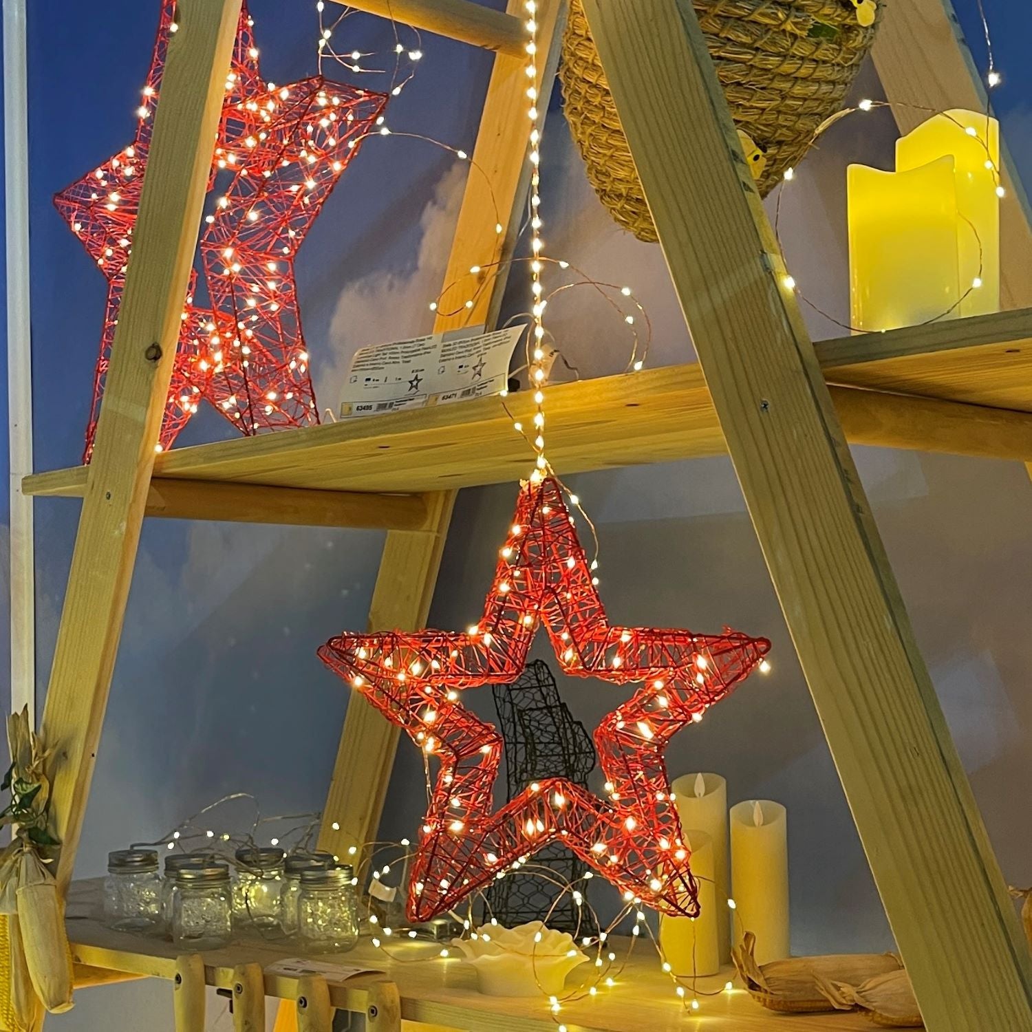 La stella LT 3D di colore rosso con 140 MicroLED e funzione di luce FlashLED Diamond è un sofisticato elemento decorativo pensato per arricchire l'atmosfera natalizia, sia in ambienti interni che esterni.