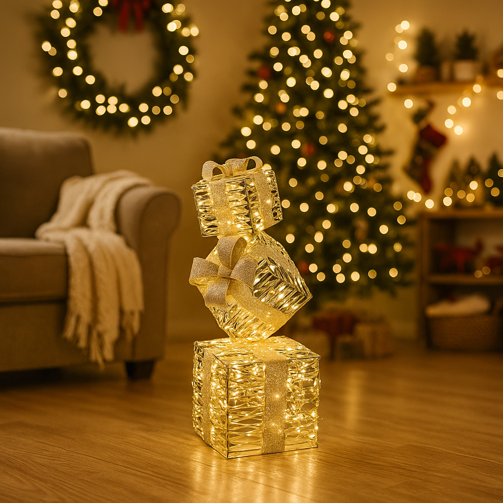 Pacchi regalo natalizi con luce LED, decorazione per interno ed esterno, set da 3