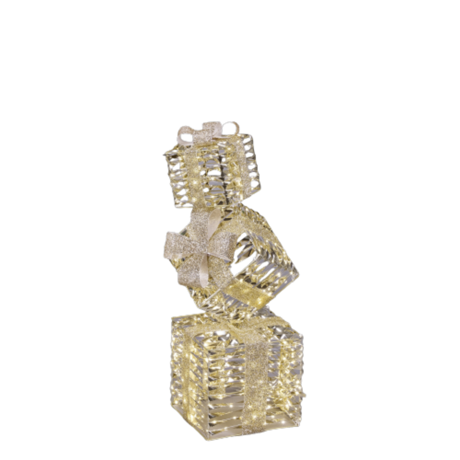 Pacchi regali impilati uno sull'altro con 350 microled, decorazione natalizia altezza 76 cm