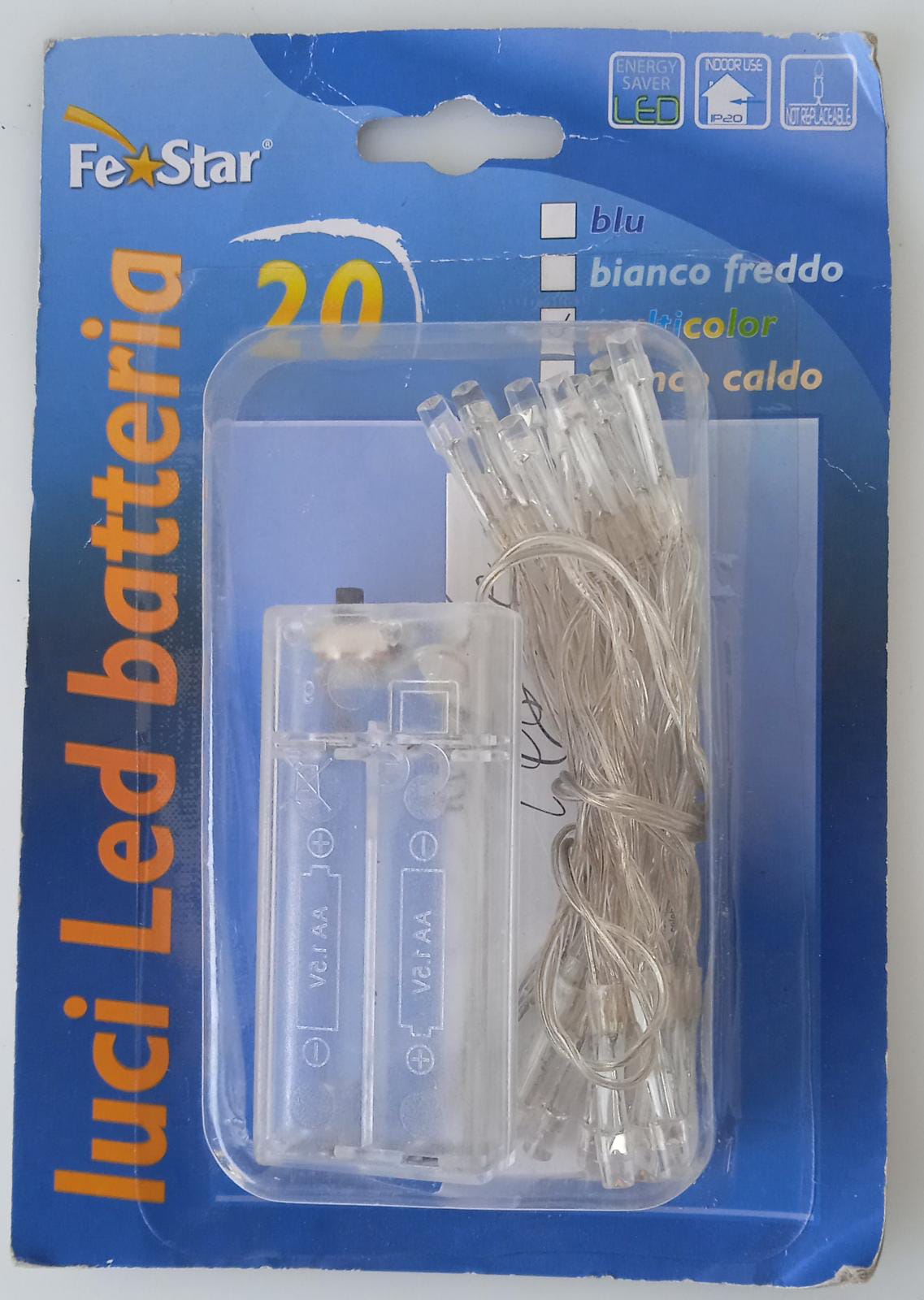 Luci di natale catena a batteria da 20 led 5 mm multicolor con cavo trasparente
