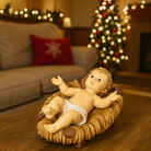 Gesù bambino con culla statua bambinello per presepe in poliresina 7,5 cm