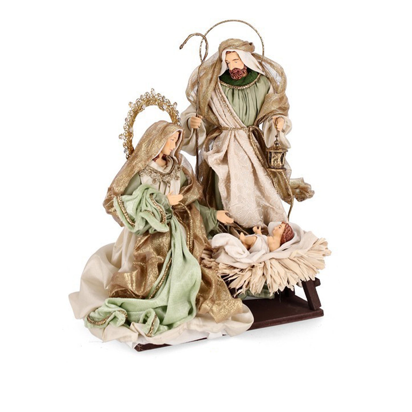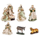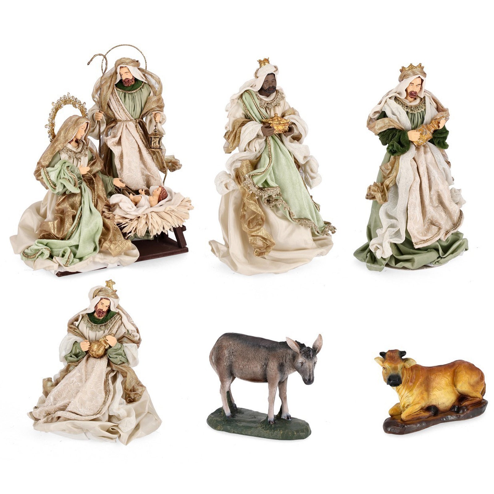 Natività con 3 Re magi asino e bue con vestiti in tessuto statue per presepe