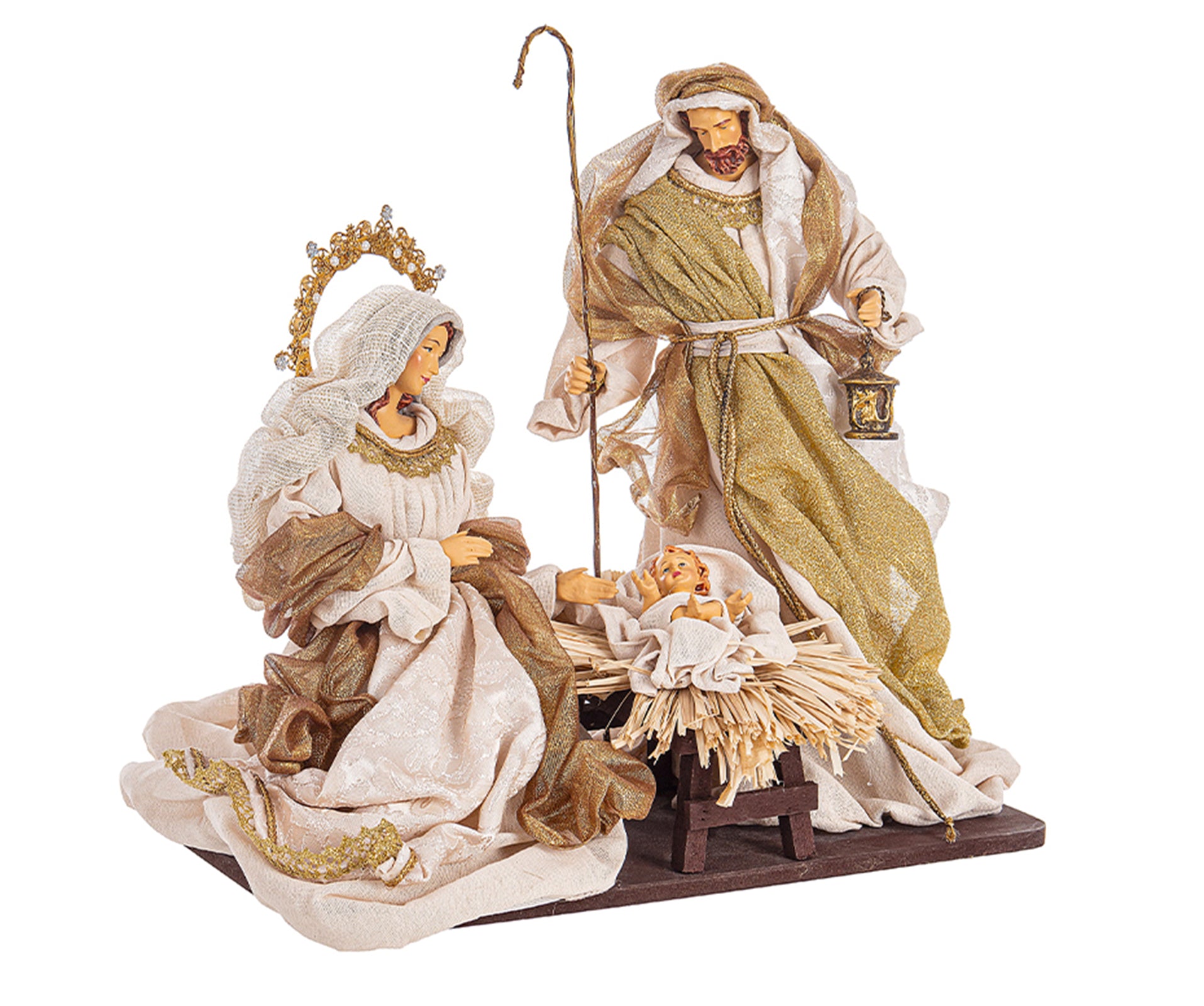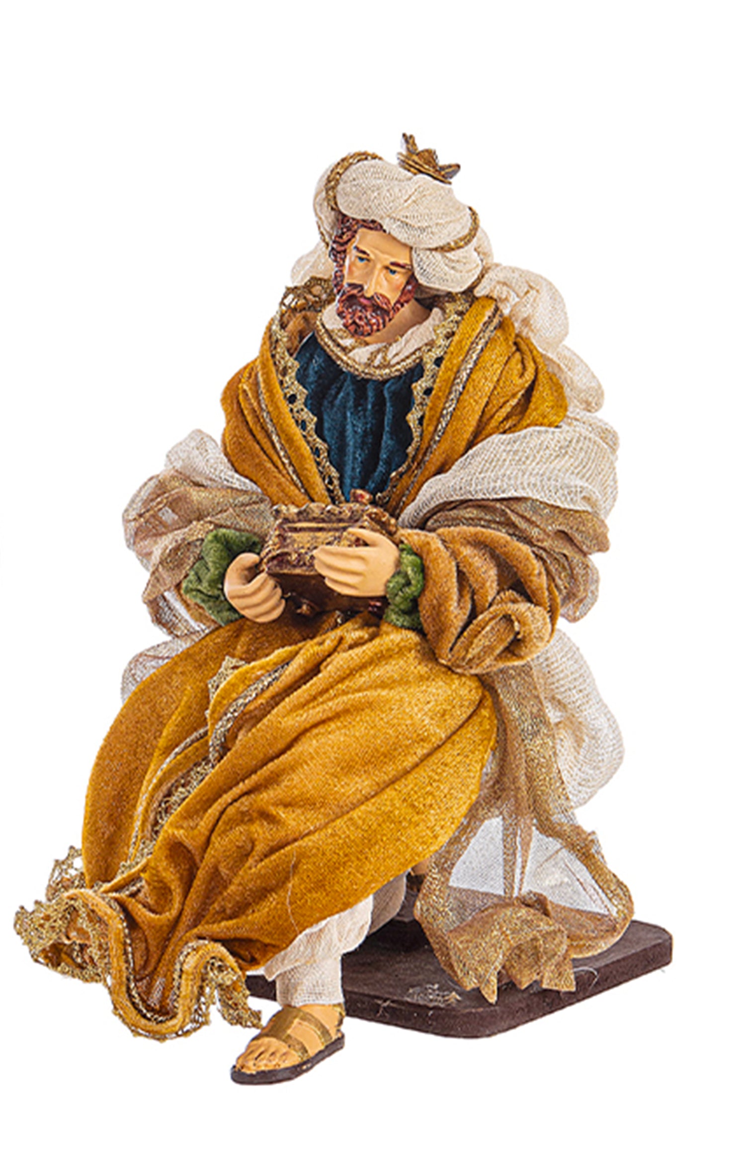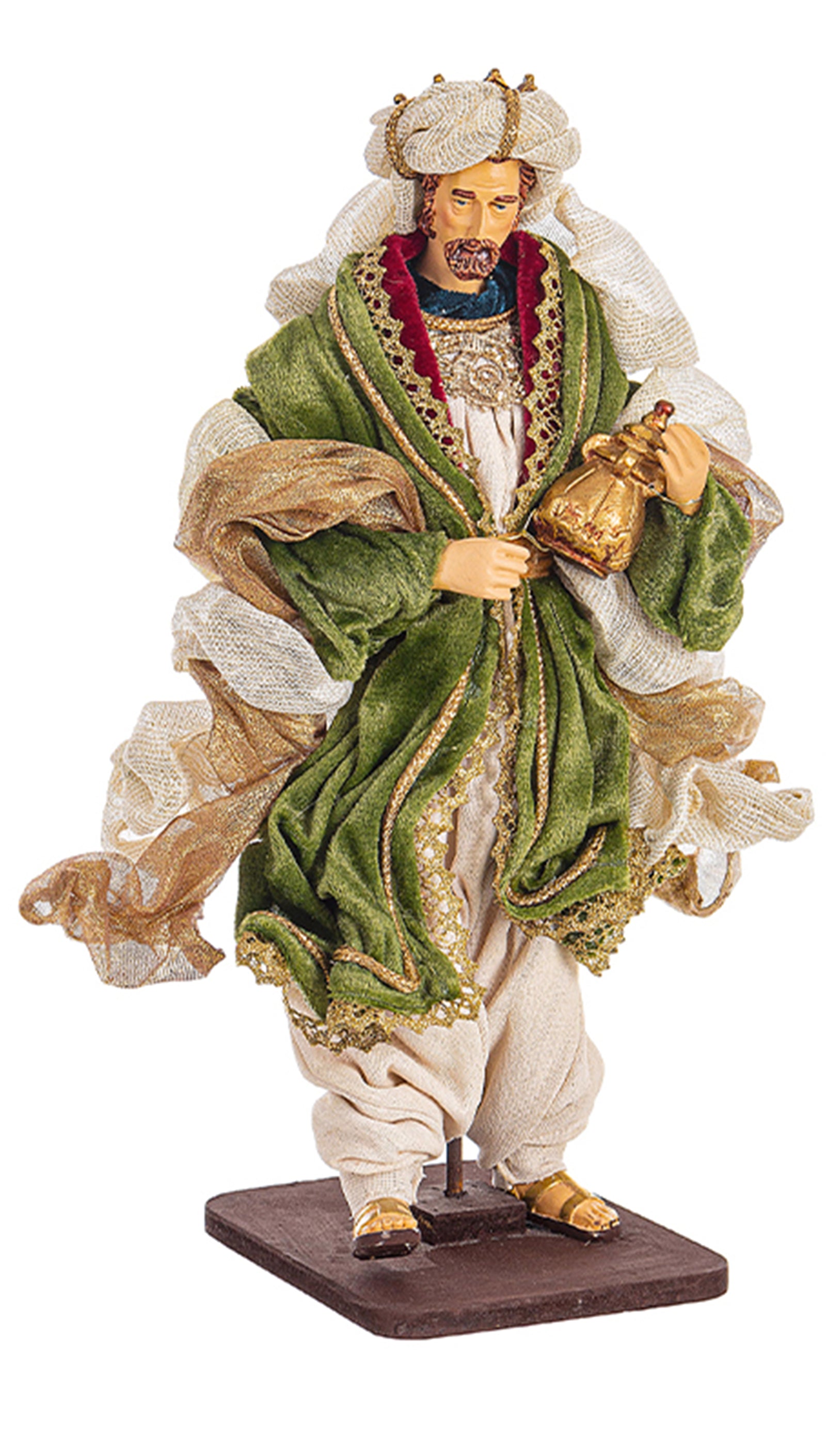 Natività con 3 Re magi con vestiti in tessuto statue per presepe h 41 cm