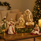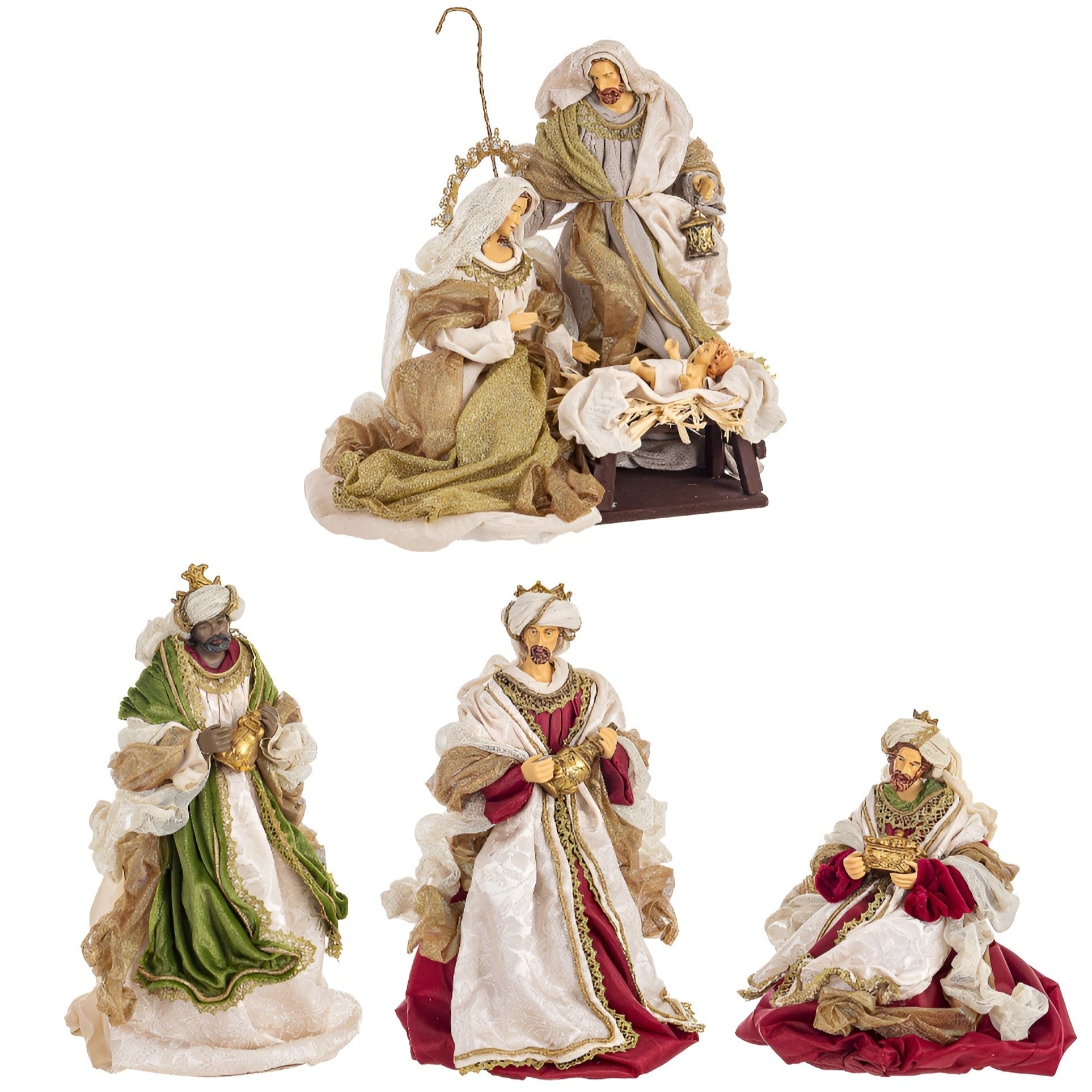 Natività con 3 Re magi con vestiti in velluto statue per presepe h 41 cm