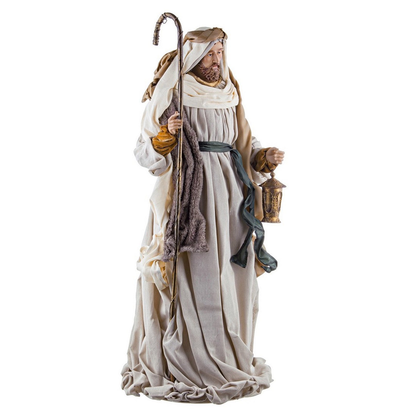 Natività completa in tessuto statue per presepe natalizio con accessori in metallo h 86 cm